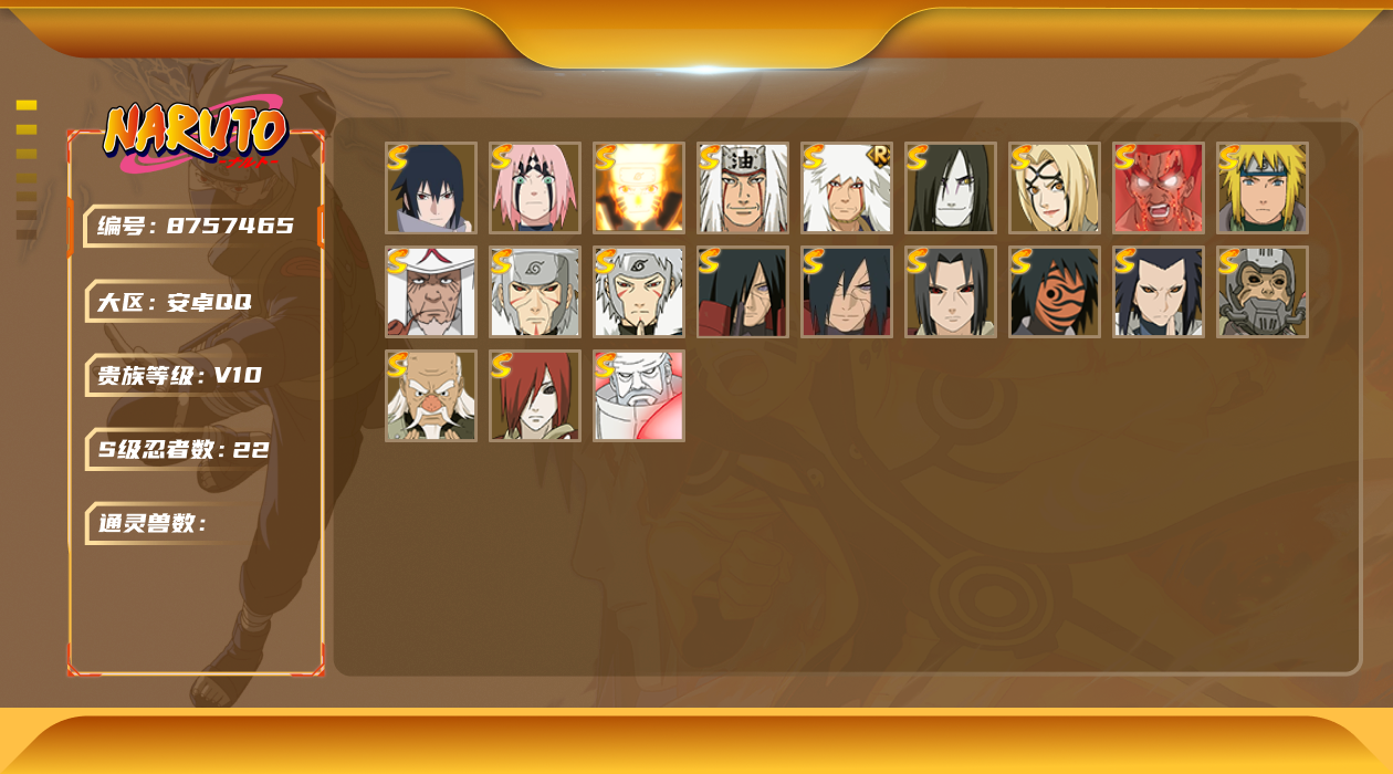 [8757465]v10 22s 可二次 s级忍者:宇智波斑「秽土转生·解」宇智波佐助「永恒万花筒」神秘面具男 「红夜之刃」春野樱 「忍界大战」大筒木金式「博人传」漩涡鸣人 「九喇嘛连结」三代目风影 「秽土转生」大野木 「忍界大战」迈特凯「死门」自来也 「舞之豪杰」宇智波鼬「秽土转生」宇智波斑「秽土转生」半藏「秽土转生」千手扉间「秽土转生」纲手「百豪」长门「秽土转生」千手扉间猿飞日斩波风水门大蛇丸自来也
