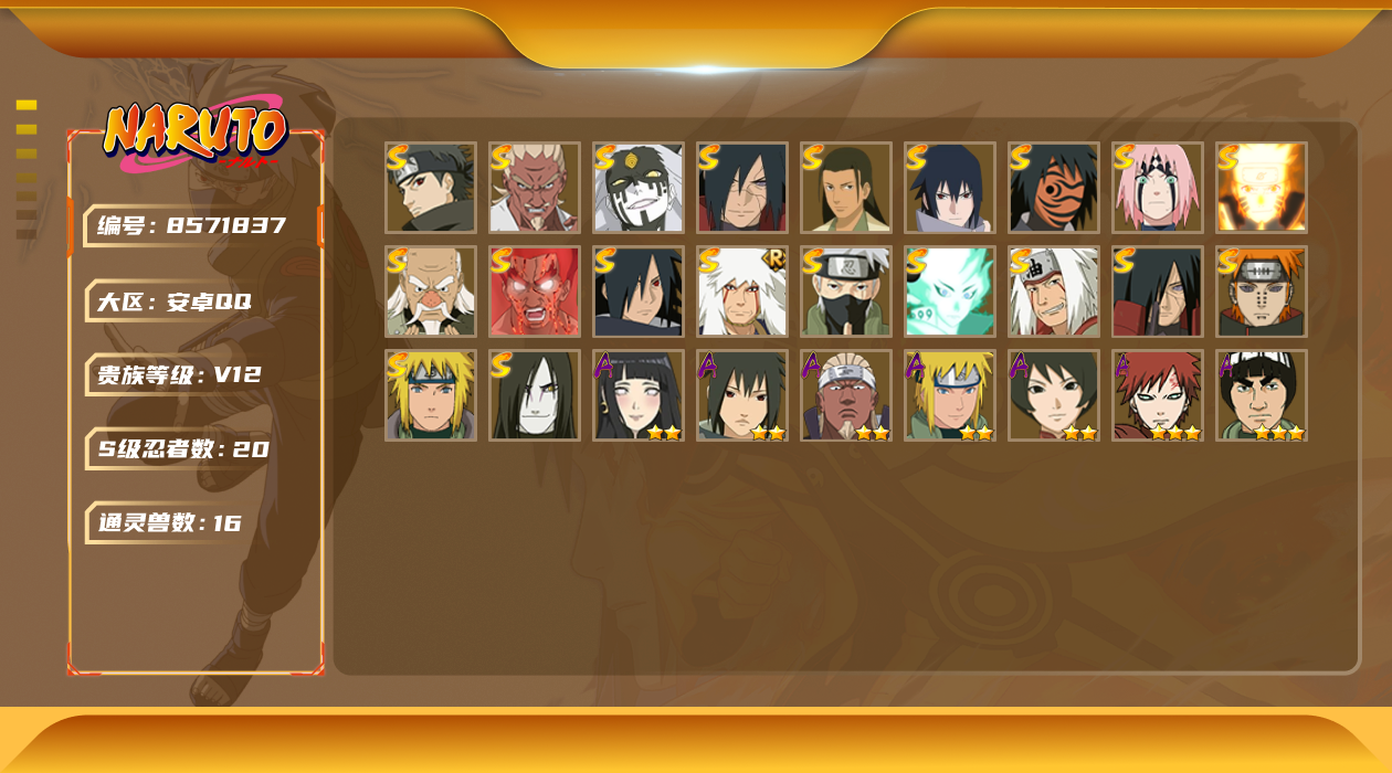 [8494751]v12 10s 可二次 可修改实名 s级忍者:艾「忍界大战」自来也 「舞之豪杰」旗木卡卡西「须佐能乎」纲手「百豪」波风水门「秽土转生」猿飞日斩「秽土转生」长门「秽土转生」宇智波斑佩恩「天道」波风水门