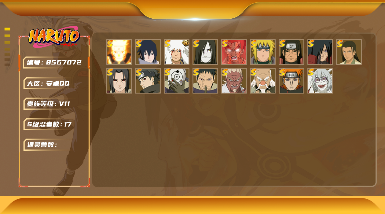 [8572548]【保证金商户】【编号00518 v10】【15s忍者准18s忍者25a忍者857w战力】 九喇嘛鸣人 永恒佐助 须佐卡卡西 舞杰自来也 大蛇丸 水门 创立柱间 秽土柱间 秽土斑 秽土解斑 忍战带土 红夜面具男 忍战大野木 天道佩恩 仙人兜 凯 阿斯玛 鬼鲛 疾风传我爱罗 飞段 仙人鸣人 九尾鸣人 永恒佐助 宇智波泉奈 忍战宁次 青年水门 奇拉比 青年艾 青年长门 绯流琥蝎 蝎 鼬 夏日鼬 迪达拉 秽土迪达拉 s司凭血飞段 博人传长十郎 博人传达鲁伊 桃式显现博人 博人传黑土 传说自来也54碎片 须佐能乎鼬79碎片 博人传桃式70碎片