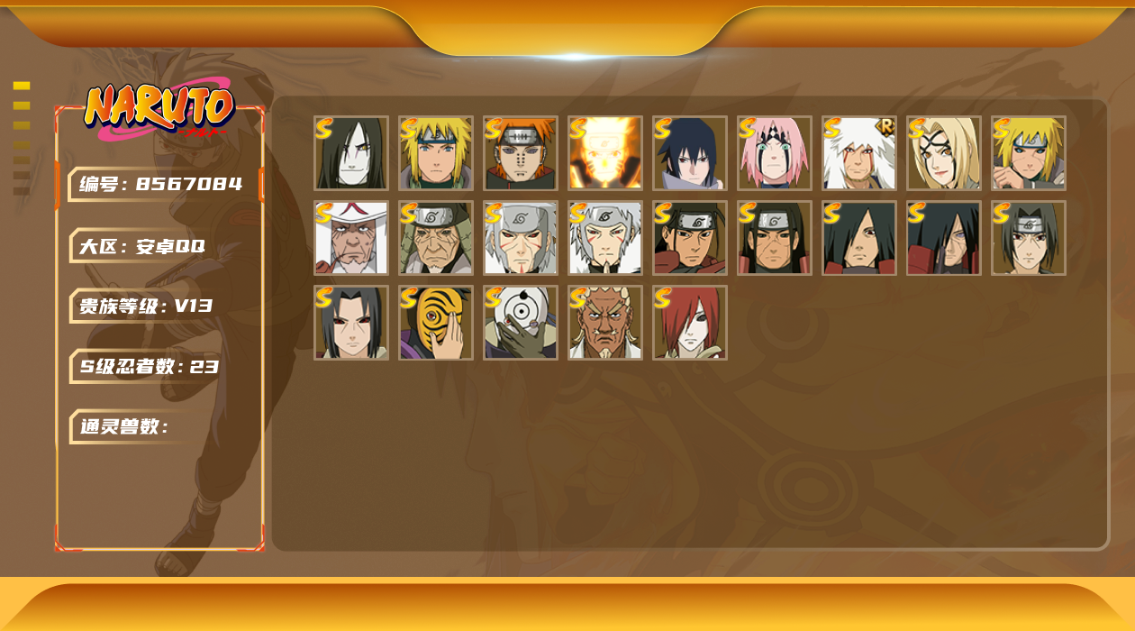 [8567062]v11 16s 可二次 s级忍者:宇智波斑「秽土转生·解」千手柱间·木叶创立宇智波佐助「永恒万花筒」神秘面具男 「红夜之刃」漩涡鸣人 「九喇嘛连结」迈特凯「死门」宇智波带土 「忍界大战」自来也 「舞之豪杰」宇智波鼬「秽土转生」宇智波斑「秽土转生」“宇智波斑” 「白面具」千手扉间「秽土转生」猿飞日斩波风水门大蛇丸纲手