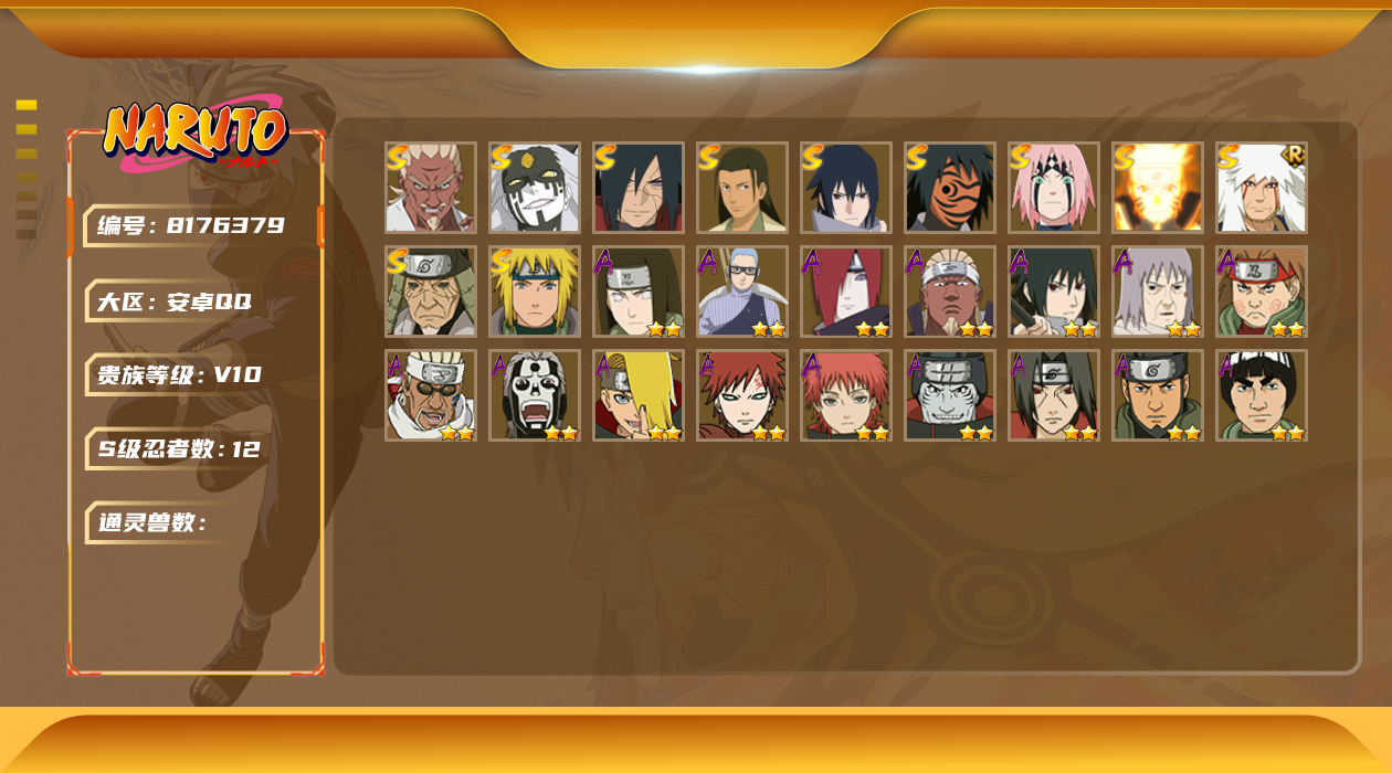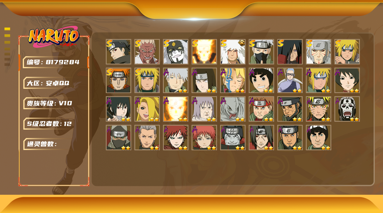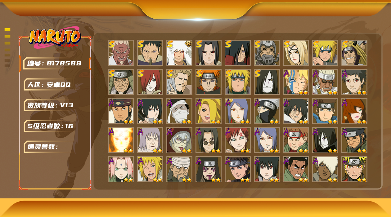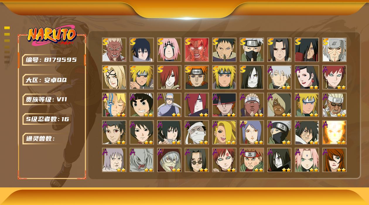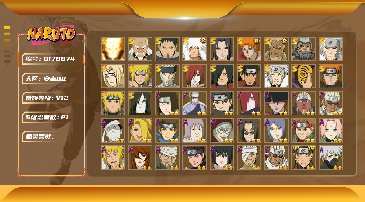 [8179595]x8681战斗力:900w;段位:上忍1阶;本服排名:1276;战区排名:未上榜;vip11级;s忍17个;a忍50个;通灵兽16个;s忍:秽土转生波风水门秽土转生宇智波斑忍界大战宇智波带土秽土转生千手扉间秽土转生宇智波鼬白面具宇智波斑百豪纲手大蛇丸(普通)死门迈特凯波风水门(普通)秽土转生长门忍界大战艾须佐能乎旗木卡卡西永恒万花筒宇智波佐助天道佩恩仙人模式药师兜忍界大战春野樱;a忍:5星迈特凯(普通)4星猿飞阿斯玛(普通)4星疾风传我爱罗4星干柿鬼鲛(普通)4星飞段(普通)仙人模式漩涡鸣人九尾查克拉漩涡鸣人万花筒写轮眼宇智波佐助须佐能乎宇智波佐助宇智波泉奈百豪春野樱忍界大战秋道丁次 忍界大战李洛克幻之真容旗木卡卡西万花筒写轮眼旗木卡卡西忍界大战旗木卡卡西宇智波止水(普通)新春限定宇智波止水新春限定波风水门青年波风水门新春限定我爱罗忍界大战我爱罗近松十人卫千代五代目水影照美冥漂泊武士桃地再不斩忍界大战奇拉比奇拉比(普通)青年艾半蛇斗篷药师兜不缘青年长门漂泊浪客佩恩六道新春限定小南角都(普通)地怨虞角都秽土转生角都晓大蛇丸绯流琥蝎蝎(普通)宇智波鼬(普通)新春限定宇智波鼬迪达拉(普通)秽土转生迪达拉死司凭血飞段暴怒宇智波带土木叶上忍猿飞木叶丸桃式显现漩涡博人六代目水影长十郎五代目雷影达鲁伊四代目土影黑土;通灵兽:忍犬(普通)蓝蛇蛤蟆吉忍龟镰鼬猿魔山椒鱼蜃鲛鲨蛤蟆仙人蛤蟆健乌鸦(普通)蛞蝓(普通)砂之守鹤蛤蟆龙蛤蟆广;时装:百战大蛇丸百战波风水门;详情看图【873区】【安卓qq】【可二次实名】