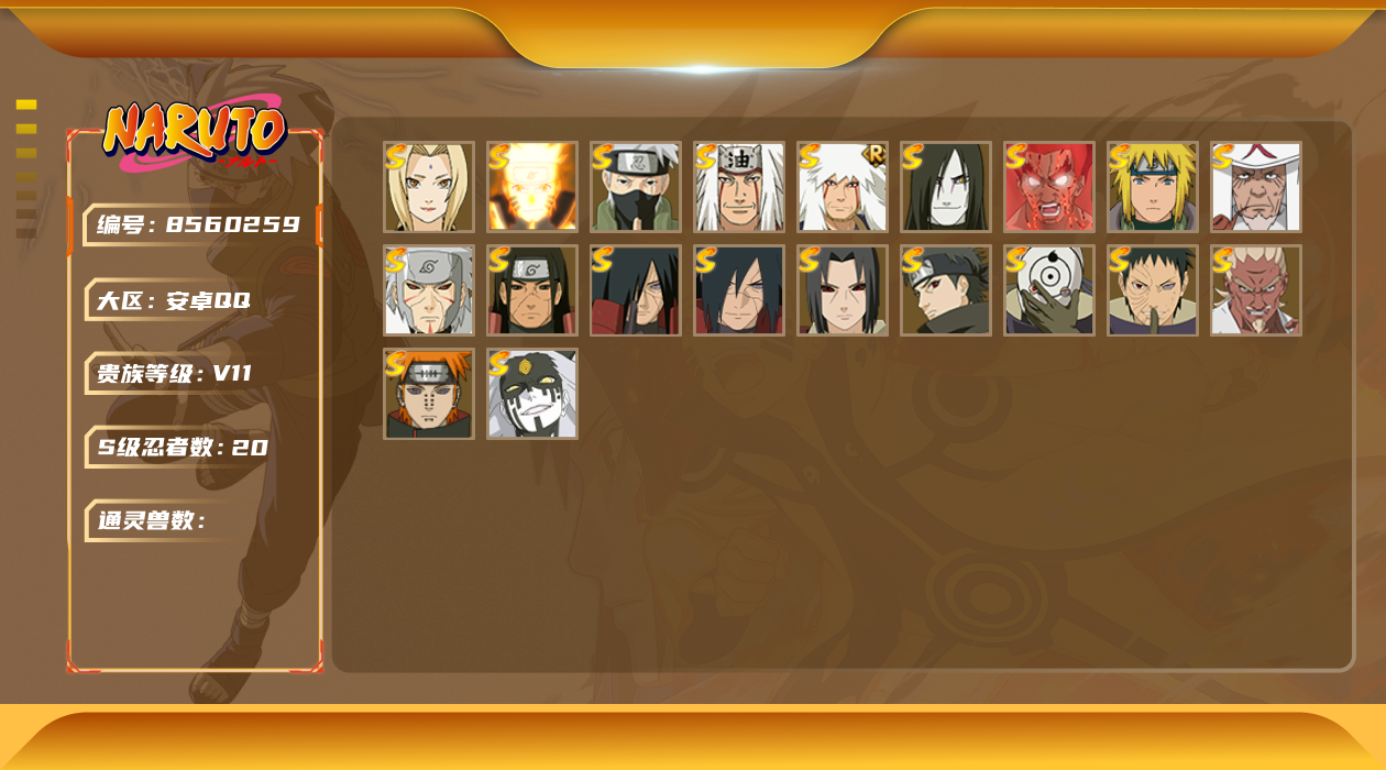 [8560483]v10 16s 可二次 s级忍者:宇智波止水「须佐能乎」艾「忍界大战」大筒木桃式宇智波斑「秽土转生·解」千手柱间·木叶创立宇智波佐助「永恒万花筒」神秘面具男 「红夜之刃」春野樱 「忍界大战」大筒木金式「博人传」漩涡鸣人 「九喇嘛连结」自来也 「舞之豪杰」旗木卡卡西「须佐能乎」宇智波鼬「秽土转生」佩恩「天道」波风水门大蛇丸