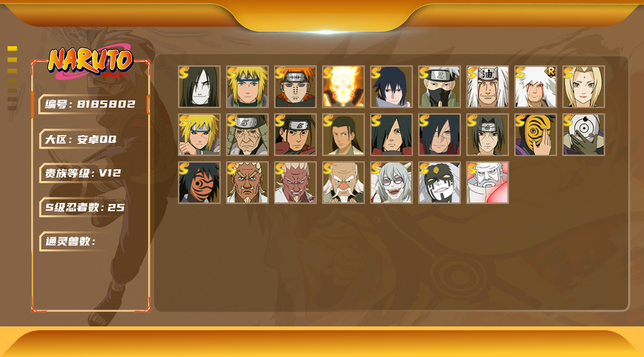 [8185802]v12 25s 可二次 s级忍者:艾「忍界大战」大筒木桃式宇智波斑「秽土转生·解」千手柱间·木叶创立宇智波佐助「永恒万花筒」神秘面具男 「红夜之刃」大筒木金式「博人传」漩涡鸣人 「九喇嘛连结」大野木 「忍界大战」自来也 「舞之豪杰」旗木卡卡西「须佐能乎」药师兜「仙人模式」“宇智波斑” 「白面具」波风水门「秽土转生」猿飞日斩「秽土转生」宇智波斑千手柱间艾「四代目雷影」神秘面具男宇智波鼬 「须佐能乎」佩恩「天道」波风水门大蛇丸自来也纲手