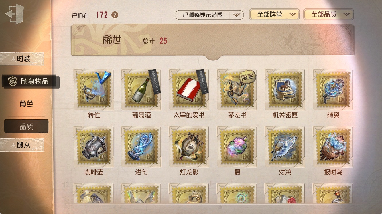 [16659281]安卓官服 手机账号 423时装 22金皮 107紫皮 23随从 172随身物品 【时装】园丁初晴勘探员-盖提亚之遗古董商-招风旗杂技演员-祈雨珠渔女-垂泪的神女病患-稀缺病案医生-永生花飞行家-异相睡眠幸运儿-星航之旅蜘蛛-花祭破轮-胡桃夹子记者-永恒空军-爱神之吻“记录员”-执政官“杰克”-艾札克·佛斯特“囚徒”-天海兰太郎先知-纯白之盐医生-银锑 冒险家-赞因“杰克”-加里杂货商-自由之爱梦之女巫-裁缝夫人记者-巡于归途昆虫学者-缚愿26号守卫-秘密大厨勘探员-妄念的陈伤骑士-ment k佣兵-蒸汽少年宿伞之魂-桃面书生幸运儿-蛋小黄的好朋友佣兵-弦音畸变哭泣小丑-熄灭的太阳孽蜥-耶梦加得大副-雷斯垂德探长雕刻家-善忘的海马体飞行家-警戒哨台26号守卫-西部大亨空军-“苏珊娜”勘探员-鼹鼠先生机械师-归来者祭司-神圣之辉冒险家-爱丽丝鹿头-林间狩者勘探员-中原中也昆虫学者-动植物学教授哭泣小丑-烟花盖伊雕刻家-动物女巫“噩梦”-“渊”“噩梦”-随机数疯眼-禁闭院长厂长-永恒之王“博士”-征服“慈善家”-舞狮机械师-小红帽“杰克”-白纹大触“杰克”-斯文加利红蝶-竹华小丑-小丑皇舞女-高卷杏园丁-艾玛佣兵-弹簧手先知-不屈的信仰盲女-甜心蛋糕前锋-蛮牛之力盲女-音波摄影师-亚兹拉尔守墓人-壁画修复员“囚徒”-太宰治入殓师-喜多川祐介入殓师-守钟人宿伞之魂-东风遥宿伞之魂-程小时陆光 【随身物品】黯岩护符奇珍灯龙影(稀世)茅龙书(稀世)夏(稀世)微缩星球(奇珍)对决(稀世)太宰的爱书(稀世)进化稀世致命的邀请函稀世逐香尘奇珍炸药桶奇珍永恒之沙奇珍转位稀世漂浮奇珍沙漠精灵(奇珍)缚翼稀世咖啡壶稀世机关密匣稀世未奏的乐章(奇珍)玫瑰手杖蓝奇珍猎人的箭囊稀世宽恕稀世见证稀世荒诞之令奇珍残局的王将稀世催眠仪奇珍报时鸟稀世电阻表奇珍黑胶碟奇珍鬼脸披肩奇珍焚火奇珍无尽森林稀世未送出的花稀世园丁布偶稀世幽灵提灯奇珍厌离稀世尼古拉斯的遗嘱奇珍