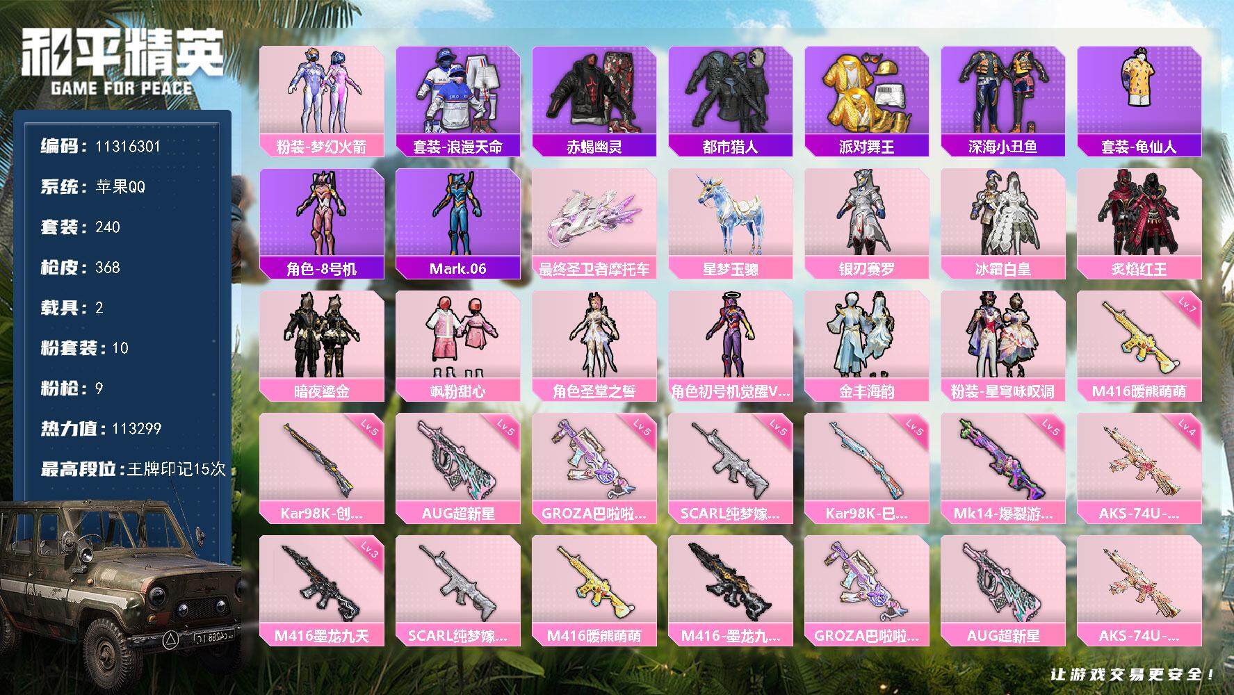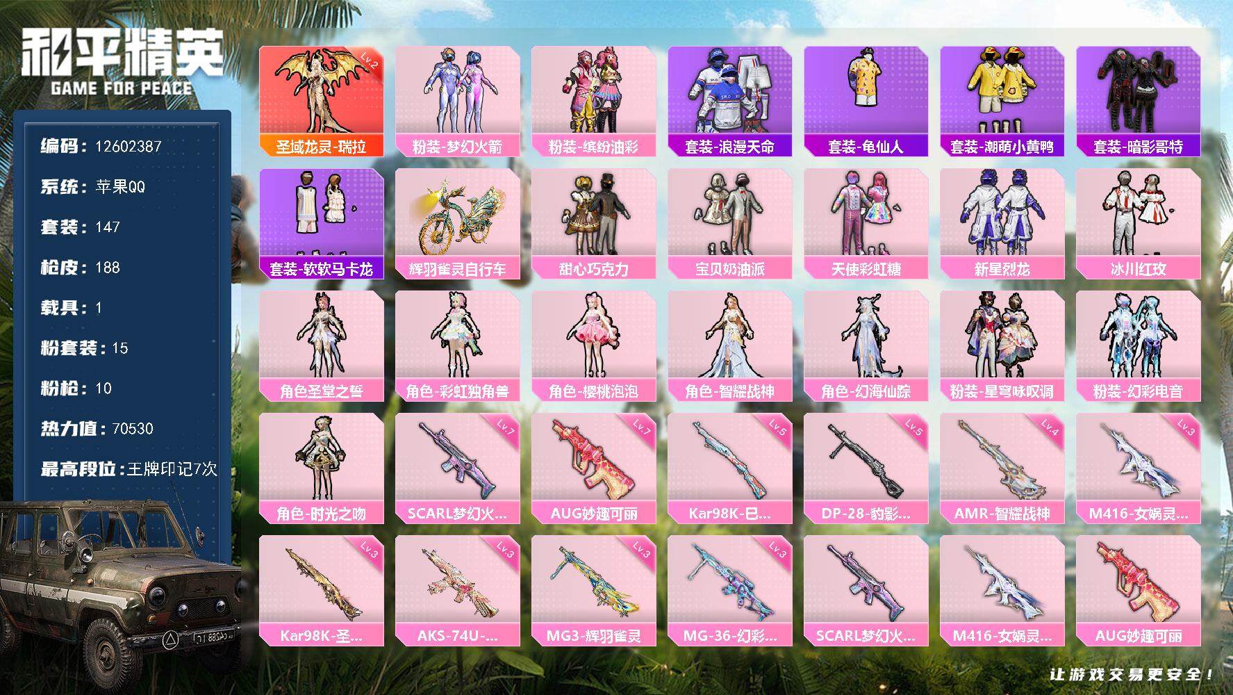 _2287977-可二次-苹果q-1红装1稀有1载具15粉装10特效呛5热门147套装188呛皮70520热力值极品公主号4款九级升级呛2级瑞拉3级m4女娲灵识火箭少女甜心三姐妹猪妹樱桃泡泡彩虹独角兽圣堂之誓小白龙红眼罩小黄鸭软软马卡龙兔兔白日梦小狗蛇点点彩虹兔云朵鹅孔雀自行车满级aug妙趣可丽满级斯嘎梦幻火箭彩虹独角兽头盔背包一套7印记历史卓越王牌9星【1红装】圣域龙灵-瑞拉2级【1稀有】浪漫天命【1载具】辉羽雀灵自行车【15粉装】圣堂之誓梦幻火箭宝贝奶油派天使彩虹糖甜心巧克力时光之吻彩虹独角兽樱桃泡泡星穹咏叹调幻海仙踪智耀战神幻彩电音缤纷油彩新星烈龙冰川红玫【10特效呛】scar-l-梦幻火箭7级m416-女娲灵识3级aks-74u-星穹咏叹调3级kar98k-圣域龙灵3级kar98k-巳巳如意5级mg-36-幻彩电音3级mg3-辉羽雀灵3级dp-28-豹影疾电5级amr-智耀战神4级aug-妙趣可丽7级【5热门】龟仙人潮萌小黄鸭兔兔白日梦暗影哥特破蛋小黄鸡【1飞行器】梦幻火箭飞行器【2头盔】梦幻火箭头盔甜心宝贝头盔【2背包】梦幻火箭背包甜心宝贝背包营地id:783537853