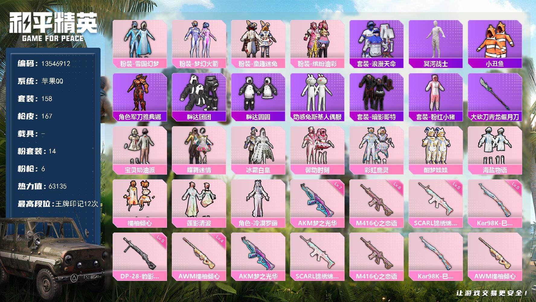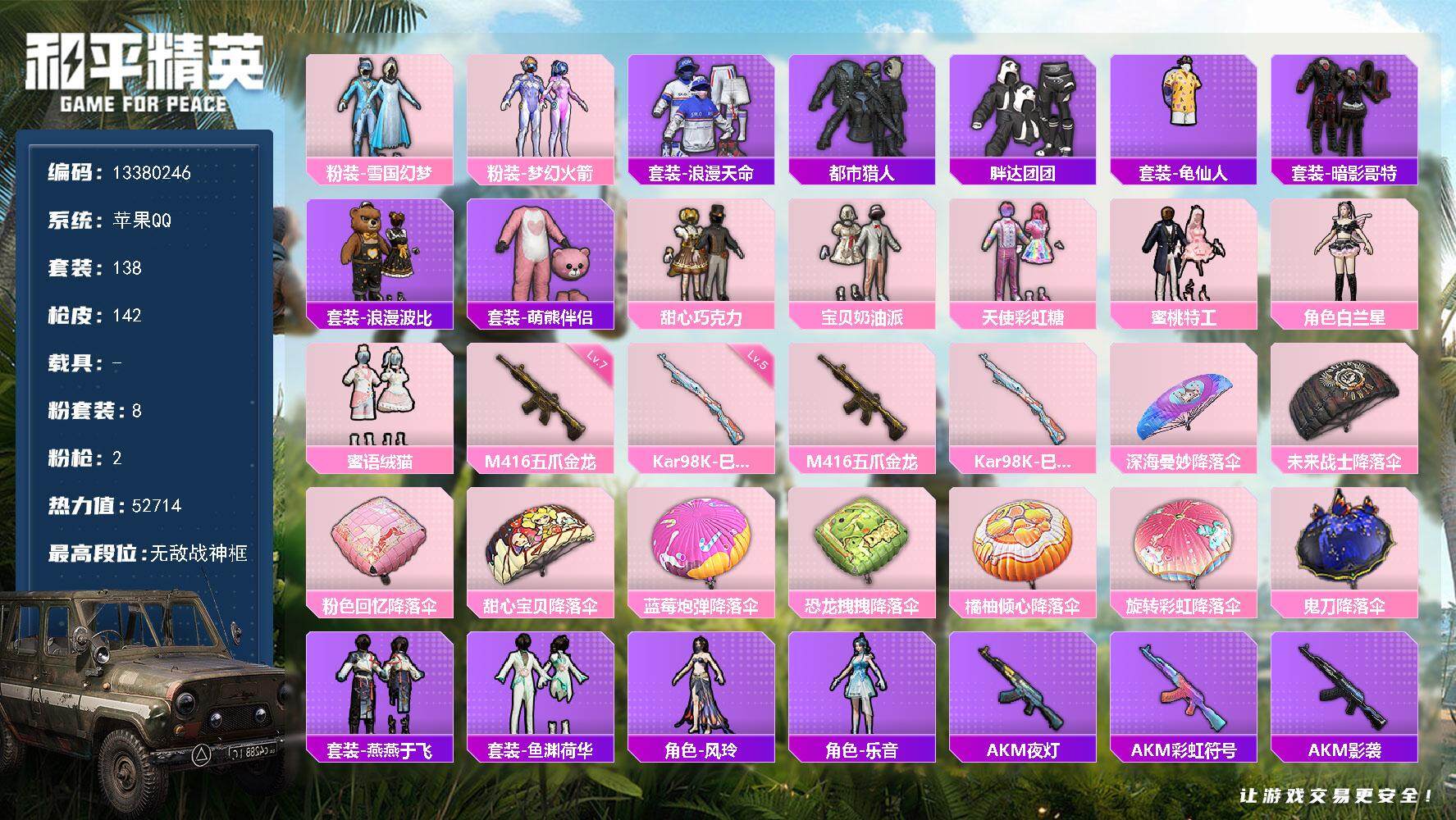 _2287986-可二次-苹果q-2稀有8粉装2特效呛14热门138套装142呛皮52402热力值战神公主精氪号战神框(ss18)雪国幻梦梦幻火箭巧克力三姐妹蜜语绒猫胖达浪漫波比兔兔白日梦红眼罩西部牛仔红面罩都市天命萌熊伴侣激萌罗小黑国宝头粉熊包流氓兔伙伴满级m416五爪金龙12印记历史无敌战神【2稀有】都市猎人浪漫天命【8粉装】梦幻火箭雪国幻梦白兰星蜜语绒猫宝贝奶油派天使彩虹糖甜心巧克力蜜桃特工【2特效呛】m416-五爪金龙7级kar98k-巳巳如意2级【14热门】龟仙人萌神柯基鹰眼刺客兔兔白日梦激萌罗小黑浪漫波比胖达团团暗影哥特西部牛仔水银刺客萌熊伴侣漫步者破蛋小黄鸡极速红龙【2头盔】雪国精灵头盔甜心宝贝头盔【5背包】雪国精灵背包甜心宝贝背包幻影战神背包萌熊伴侣背包深海曼妙背包营地id:772485305