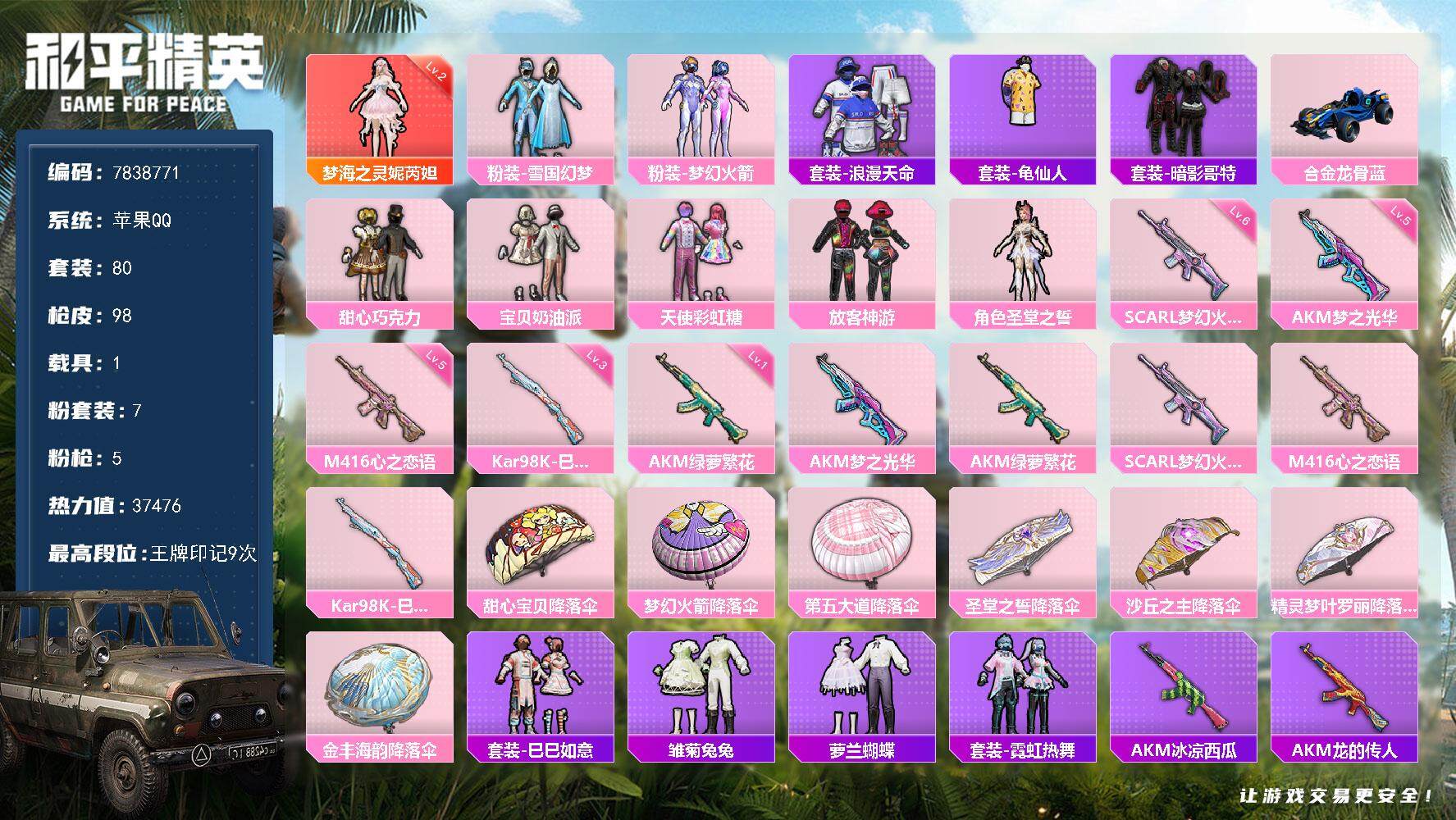 _2287994-二次-苹果q-33844热力值1车7粉5呛极品女号妮芮妲2级雪国火箭少女巧克力三姐妹圣堂之誓发光眼罩红眼罩9王牌印记历史卓越王牌8星71套装92呛皮【1载具】合金龙骨蓝色【1神装】梦海之灵-妮芮妲【1稀有】浪漫天命【7粉装】圣堂之誓梦幻火箭雪国幻梦宝贝奶油派天使彩虹糖甜心巧克力放客神游【5特效呛】scar-l-梦幻火箭6级m416-心之恋语5级akm-绿萝繁花4级akm-梦之光华5级98k-巳巳如意【3热门】鹰眼刺客暗影哥特漫步者【2头盔】雪国精灵头盔甜心宝贝头盔【3背包】梦幻火箭背包雪国精灵背包甜心宝贝背包营地id:799716131