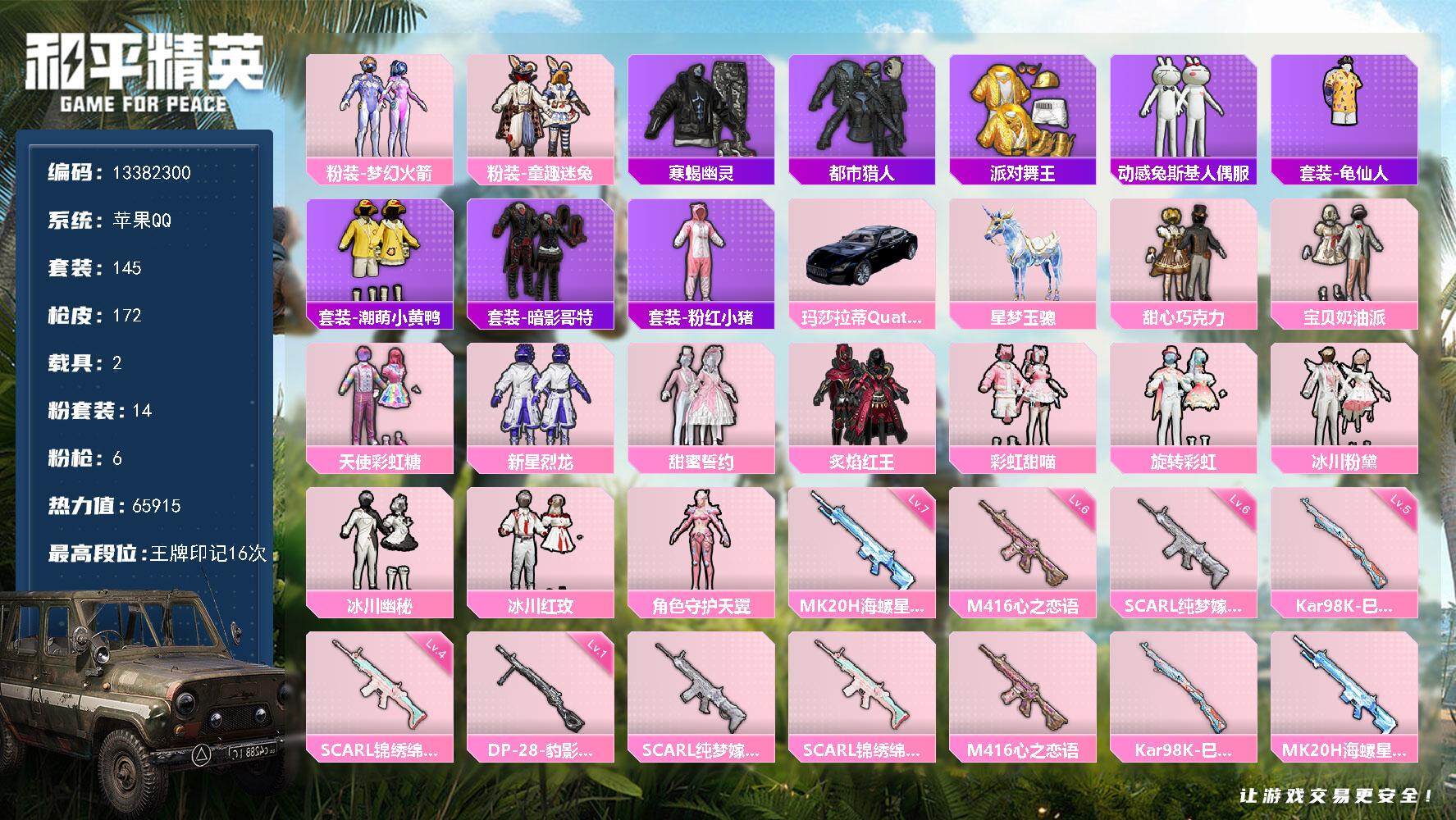 _2287974-可二次-苹果q-网络风险稳定后可解除-4稀有2载具14粉装6特效呛12热门145套装172呛皮65915热力值极品身法精氪素材号都市寒蝎金鞋红眼罩新101巧克力三姐妹小白龙童趣迷兔冰川二姐妹旋转彩虹彩虹甜喵小黄鸭兔兔白日梦动感兔斯基童趣迷兔背包星空马蓝玛莎6级m416心之恋语6级斯嘎纯梦嫁纱满级mk20-h-海螺星光16印记历史绝世王牌16星【4稀有】寒蝎幽灵都市猎人派对舞王派对舞王(金靴子)【2载具】玛莎拉蒂q蓝色星梦玉骢【14粉装】梦幻火箭宝贝奶油派天使彩虹糖甜心巧克力守护天翼新星烈龙甜蜜誓约冰川幽秘童趣迷兔炙焰红王彩虹甜喵冰川粉黛冰川红玫旋转彩虹【6特效呛】scar-l-纯梦嫁纱6级scar-l-锦绣绵绵4级m416-心之恋语6级kar98k-巳巳如意5级dp-28-豹影疾电1级mk20-h-海螺星光7级【12热门】龟仙人动感兔斯基潮萌小黄鸭鹰眼刺客兔兔白日梦暗夜契约暗影哥特纯白誓言粉红小猪漫步者破蛋小黄鸡极速红龙【2飞行器】梦幻火箭飞行器梦幻舞会飞行器【4头盔】梦幻火箭头盔甜心宝贝头盔潮萌小黄鸭头盔甜蜜誓约头盔【5背包】九霄背包梦幻火箭背包甜心宝贝背包潮萌小黄鸭背包甜蜜誓约背包营地id:906501379
