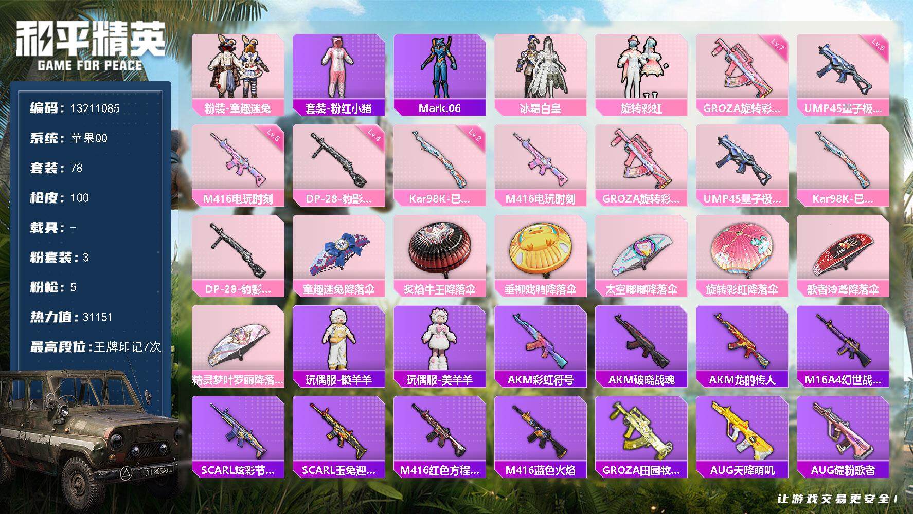 _2287735-可二次-苹果q-3粉装5特效呛4热门78套装100呛皮31151热力值7印记1卓越历史超级王牌11星精氪小公主号童趣迷兔银尘美羊羊海盐绵绵冰蓝螳螂满级狗砸旋转彩【3粉装】童趣迷兔冰霜白皇旋转彩虹【5特效呛】m416-电玩时刻5级kar98k-巳巳如意2级dp-28-豹影疾电4级ump45-量子极限5级groza-旋转彩虹7级【4热门】mark.06鹰眼刺客粉红小猪极速红龙营地id:794349675