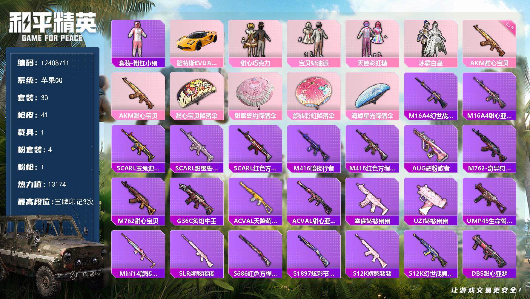2287783-可二次 苹果q-1载具4粉装1特效呛3热门30套装41呛皮 13174热力值 精氪小号 甜心三姐妹 5级ak甜心宝贝 黄色路特斯 甜心宝贝头盔背包一套 3印记 历史超级王牌9星 【1载具】 路特斯ev黄色 【4粉装】 宝贝奶油派 天使彩虹糖 甜心巧克力 冰霜白皇 【1特效呛】 akm-甜心宝贝 5级 【3热门】 暴走罗小黑 粉红小猪 m762-奇异狩猎者 【1头盔】 甜心