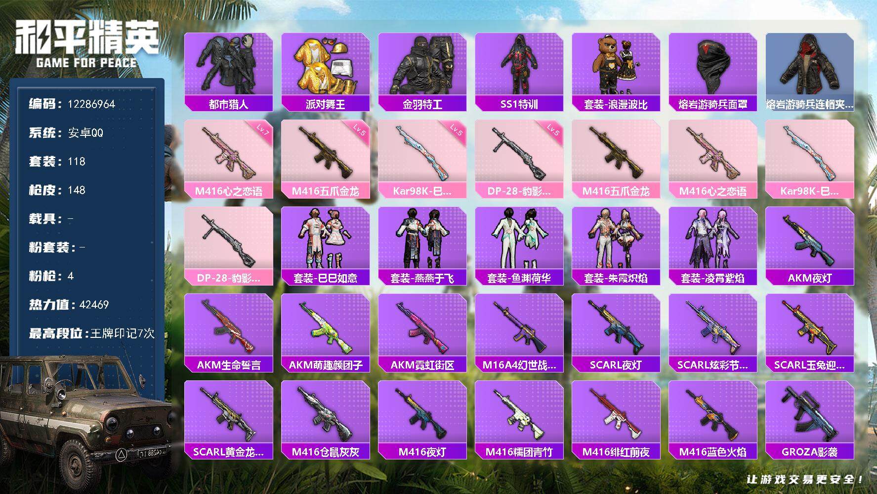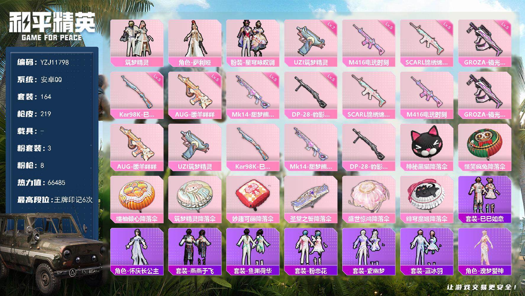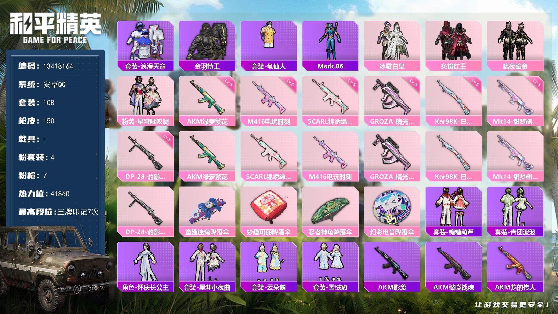 _2287722-可二次安卓q-1稀有4粉装7特效呛5热门精品小号咏叹调m4电玩满级mk14甜梦满级蓝螳螂童趣背包108套装150呛皮41860热力值7印记历史超级王牌7星【1稀有】浪漫天命【4粉装】星穹咏叹调暗夜鎏金冰霜白皇炙焰红王【7特效呛】scar-l-锦绣绵绵5级m416-电玩时刻5级akm-绿萝繁花5级kar98k-巳巳如意5级dp-28-豹影疾电5级mk14-甜梦熊击5级groza-镜光银凌5级【5热门】mark.06龟仙人金羽特工破蛋小黄鸡英勇保护者【1头盔】甜心宝贝头盔营地id:912169609