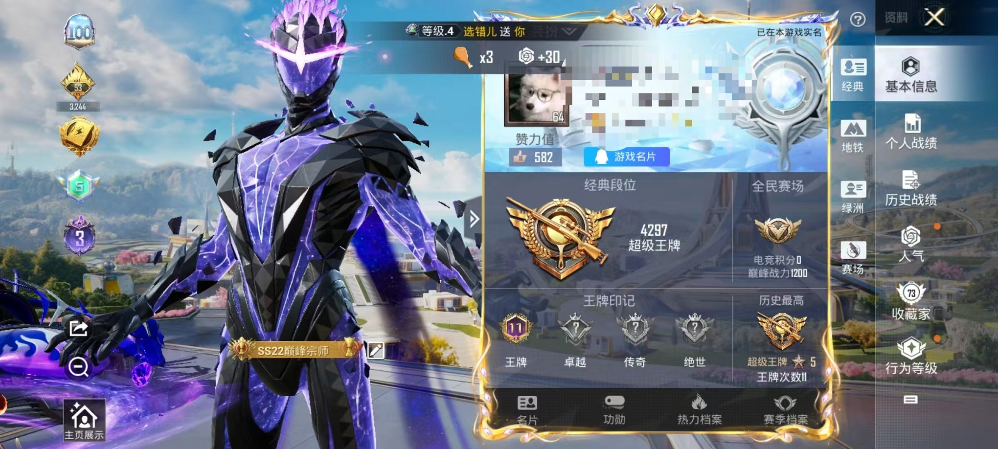 1载具-91套装-144呛皮-【战神框满级m4风花雪月6特效呛3粉装1载具 秒换绑不用等】 苹果q区-51085热力值-7印记-历史最高段位:无敌战神-91套装-144呛皮 【1载具】 鬼马风驰【1稀有】 akm-百万伏特【3粉装】 莲影清波 未来歌姬 幻彩电音【6特效呛】 m416-风花雪月7级 mk14-闲梦青缨7级 dp-28-圣堂之誓6级 m417-第五大道4级 kar98k-巳巳如