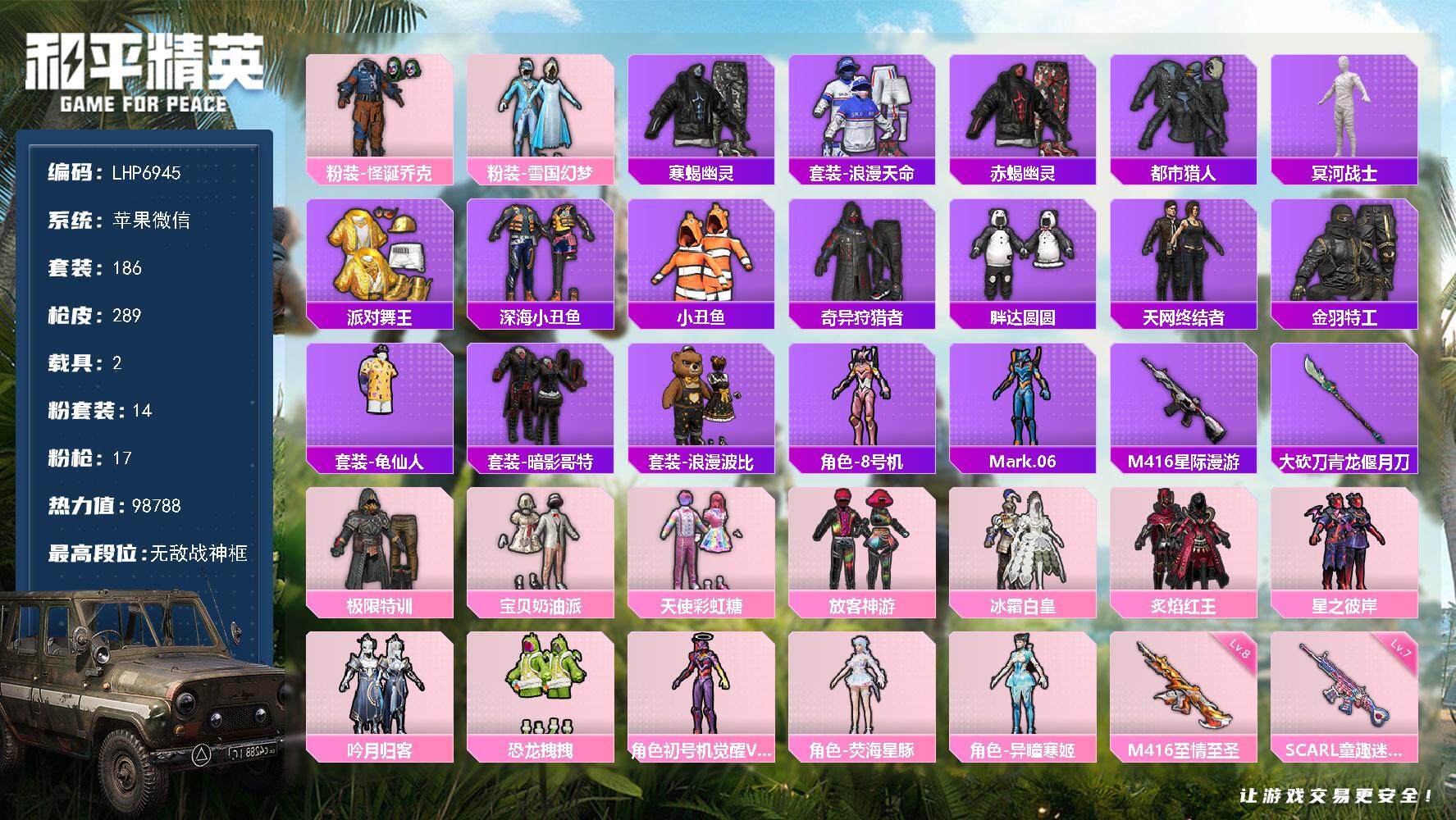 [13386921]猪脸发光眼罩小丑鱼山涧鹿灵满级akm-炫紫旋律满级m762-甜蜜誓约红眼罩竞技安卓手q-可二次-13粉装-3特效-1载具 粉套-缤纷油彩-粉套-精灵迷巫粉套-金风玉露粉套-天启纪元粉套-深海曼妙粉套-金属狂野粉套-静灵氛围粉套-智能音符粉套-放客神游