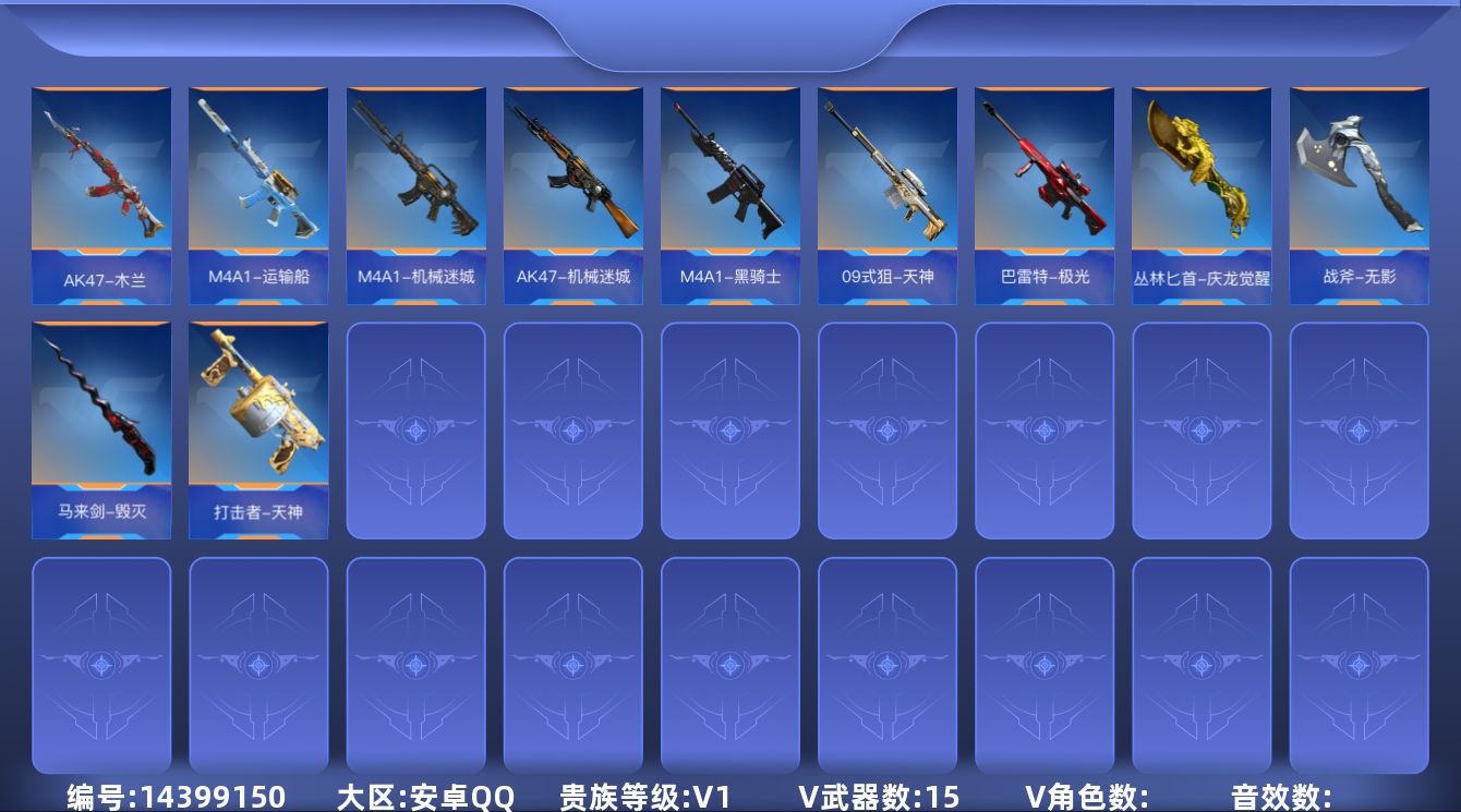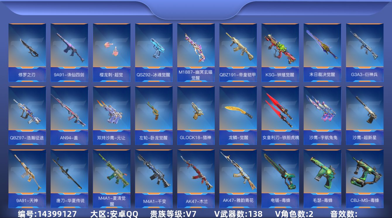 [14399081]v8 16王者武器 177英雄武器 4英雄角色 可二次 可修改实名 【v武器】:气手呛-血月沙鹰-神兵修罗scar-探星者方天画戟末日裁决者毛瑟-毒蜂cbj-ms-毒蜂hk416-极光加特林-堡垒awm-天使唐刀-大唐荣耀手斧-机械迷城秋逸m1216-血月mac-10-孟获q03-天罚m1887-幽冥玄喵觉醒双管猎呛-极光盾烈焰弓hk417-炎龙铠甲g3a3-衍神兵q97-浩瀚征途环刃-炫光掠影觉醒awm-大湾溢彩ddm4-pdw-星际宇航觉醒an94-盖an94-精卫填海m200-权9a91-天神唐刀-华夏传说蟒蛇-奉先ak47-木兰双持沙鹰-元让左轮-卧龙觉醒甩棍-卧龙觉醒掠夺者p365-虹舞scar-心动pick破邪蛇棍觉醒马来剑-耀金伯爵女皇利刃-铁胆虎魄思召剑czs2-仲康蟒蛇-鼓龙芭蕾特-坦克堡垒m4a1-死神ak12-天启剑齿虎-炫彩刘易斯-血月加特林-蟒蛇awm-天龙芭蕾特-毁灭暗杀神m200-幻神09式狙-天神m14ebr-天神m4a1-竞界荣光ak47-猩红传说m4a1-雷霆m4a1-机械迷城m4a1-赛博雷神ak47-血武士81式-光明之神m4a1-星象9a91-游骑兵81式-机械纪元m4a1-龙血ak47-奉先scar-幽暗骑士血月尼泊尔-星象蝴蝶刀-极光尼泊尔-机械纪元q03-金色蔷薇ak47-黑鲨q03-死神擎天觉醒斩魔剑-天使马来剑-毁灭屠龙ak47-华夏传说地狱火黑龙魂地狱烈炎双持斯泰尔-天使沙鹰-修罗沙鹰-天神双持柯尔特-极光 【王者武器】:王者之蝶王者之兽雷霆王者之锋q03-王者蔷薇王者之狱王者之神王者之影王者之魄王者之心王者之迹王者之魂王者之锋
