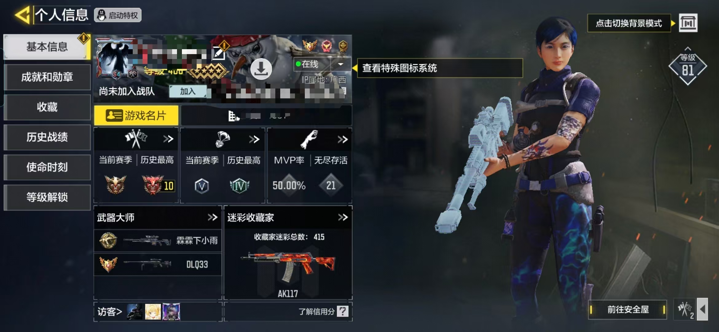 【神话3 传说15 动能无限 炫彩冬日】安卓q-等级400-史诗呛械255 【3神话】 ffar 1-无境空刃 mg42-永别 kilo 141-暗夜奏鸣曲 【1典藏传说】 50gs-路阻且长·典臧 【15传说】 蝴蝶刀-雷光焰影 sa80-狂暴冲锋 藤棍一沙海蛇影 locus-动能无限 dlq33-先进火力 switchblade x9-银河双鱼 50gs-路阻且长·典臧 s