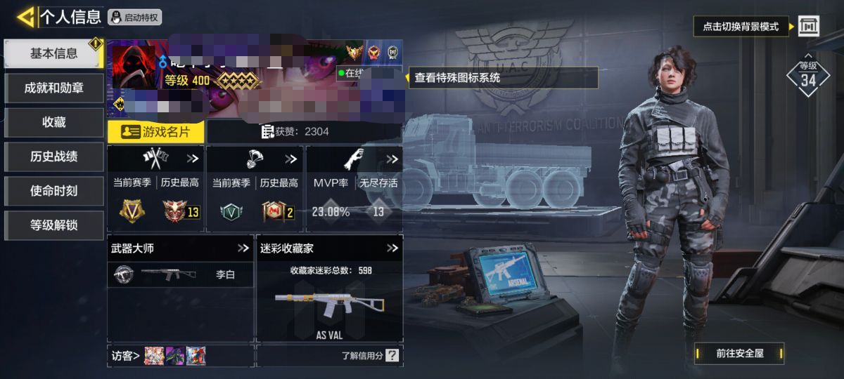 400级 7神话 2典藏 22传说 736史诗 段位无 可二次 可修改实名 【典藏呛械】:hg40-灵魂羁绊·典藏sks-粒子震击·典藏 【神话呛械】:smg5-潮海汐月mg42-永别grau 5.56-源核天灾ffar 1-无境空刃m13-黑耀星辰kilo141-暗夜奏鸣曲swi