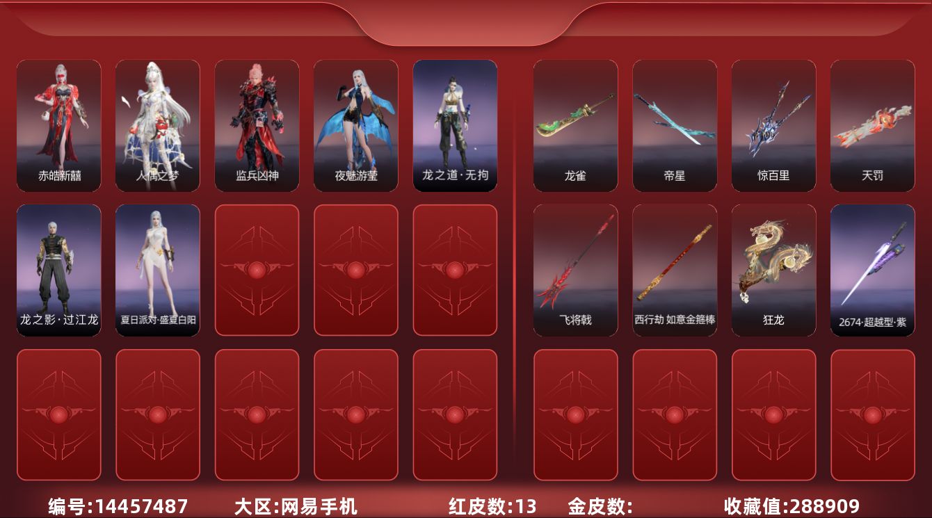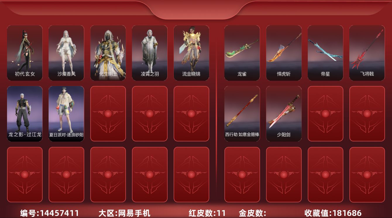[14457333]wj3268,网易手机,1月9可换绑,三人段位陨星5,金砖1119,永昼双排五百天人,梦华单排五百天人,2谪星,40红,1166金,声望8,谪星风之絮语,1孔,1紫,谪星沧澜绡,1孔,1黄,幻梦秘匙,幻梦鲸彩,月安,好椰,销兵镝遗,御祥云,雪霜姿,绿野守护竹韵悠,夜蔷薇,四海,凶虎,神君印,2674初代机,炎烈珠,麒麟魄,少阳剑,冰魄,太玄之刃,灵狐幻刃,帝星,比羿,龙雀,狼主,悍虎斩,飞将戟,涯角,天琼,狂龙,凤求凰,天罚,苍穹之光,赤皓新囍,初代玄女,星辉魔纱,化生明王,长天藏锦,戎金狼,狱炎烬甲,熛怒炼火,樱云天女,蝶梦,人偶之梦,泣珠龙纱,青龙将星,凌霄之羽,绝代风华,监兵凶神,夜魅游莹,通天狐妖,化道者,流金晓锦,守墨麒,画中仙,墨离,灵心,不惧,精武魂,冲冠,生死局,自知,龙虎斗,至纯,过江龙,高校水着,弄潮逐浪,甜筒兔,午后瑰夏,长夏清澜,椰风夕照,仲夏霜华,昭夏流金,盛夏白阳,赤夏悠漾,半夏晚风,逐浪砂阳,极光夏夜,绮夏幻梦,苍雷破,监星尺,醉花风,碎星河,泡泡棒,建木,天威,墨不归,云朵咩咩,腓腓,兰庭月,鹧鸪天,琉璃香槟,怒浪,枫狩,碎月缎光,劫妹飞船,花海台,提步,傲立,木棉,男性发型14,活动中心手机绑定无法解绑,找回包赔,