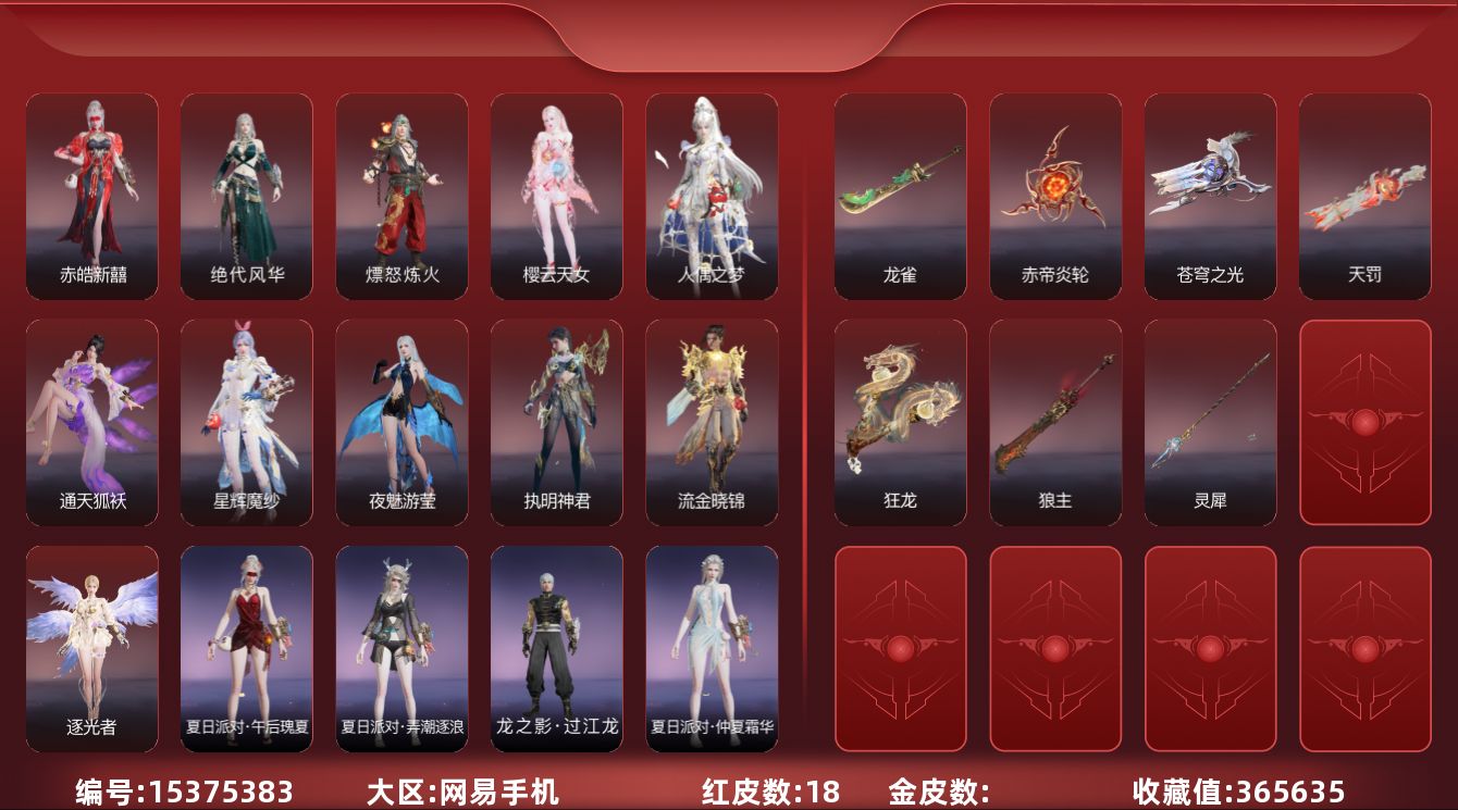 [15376711]yjj1224/2.6换绑/等级551/s19三人蚀月4/18红528金收藏值321522/赤皓新囍/初代玄女/化生明王/戎金狼/熛怒炼火/墨离/青龙将星/绝代风华/天罚/苍穹之光/少阳剑/帝星/龙雀/狼主/飞将戟/西行劫·如意金箍棒/逆晦朔/狂龙倒反阴阳·炽羽/夜华朝/耀世魂花/夏日派对·午后瑰夏/紫金玉女/红川仙子/碧水青天/九阴圣女/绿野守护·悠竹萌客/楚韵九歌·山鬼/街头狂欢·涂鸦少女/绮云衫/冬日绮韵·白熊/九骊之君/夏日派对·夏海伏浪/武道无穷·少林/枫行者/八宝龙王/九州遗珍·福寿仙/白族·云雪染/智绘·萍之缘/新倩女幽魂·瑶光沐月/新倩女幽魂·流纨裙/怪诞狂想·友情岁月/护世四法·多闻天王/斗罗大陆·唐三/银狼裘/噬月天狼/苍狼之主/康复之星/巨阙/夏日派对·椰风夕照/逆水寒·江海沧澜/游四海/巅峰极速·小可/春日序曲·晨风/承云兰寿/阴阳姬/清雅少女/决战平安京·恋念私语/决战平安京·御神之刃/妖刀姬/绿野守护·暗沼摩罗/阿娜希塔/伏波龙女/怒浪/西行劫·杨戬/常胜袍/百战·破荆者/弘毅袍/龙之影·过江龙/封神录·申公豹/司天命/朝闻道/若谷/封神录·龙吉公主/夏日派对·仲夏霜华/寒英素雪/祸津素盏/麟鹿大铠/苍雷丸/倒反阴阳·凛冬/千秋匠心·玉叶景/长歌诗韵·胡旋女/观山海·青鸟/龙门·飞天/惊云羽/瀚海苍鹰/葫芦兄弟·蛤蟆头领/街头狂欢·不败擂主/观山海·秋神蓐收/干将莫邪/护世四法·持国天王/观山海·冬神玄冥/春不敛/封神录·妲己/护世四法·广目天王/日影花阴/黄昏巫主/夜绸袍/寿竹云春/代号·玉脍/赤诚心/封神录·姜子牙/云间影/绿野守护·山漠狞影/暖冬茶馨/斩神·林七夜/发型金色皮肤:簪缨发/韶光发/绿野守护·娇憨发/p5r·noir发型发/缘觉发/子菀发/伏苓发/(挑染)暮落发/九州遗珍·春桃发/苍狼宗主发/斗罗大陆·海神发/逆水寒·江海发/巫师3·白狼发/月丹发/(挑染)樱舞发/碎浪发/(挑染)填海发/绿野守护·冷傲发/立靖仇驗发/(挑染)清威发/(挑染)代号·冷萃发/冰凌发/灵儿发/封神录·红鸾星发/阎摩发/翔鸾发/(挑染)鸿影发/观山海·青鸾发/千秋匠心·琳琅发/观山海·天刑发/(挑染)宵烛发/观山海·冥泉发/流萤发/缱绻发/幽焰发/古溪发/封神录·笼烟芍药发/惊雀发/(挑染)狮鬃发/逆水寒·极夜发/(挑染)风吹雪发/封神录·仙风