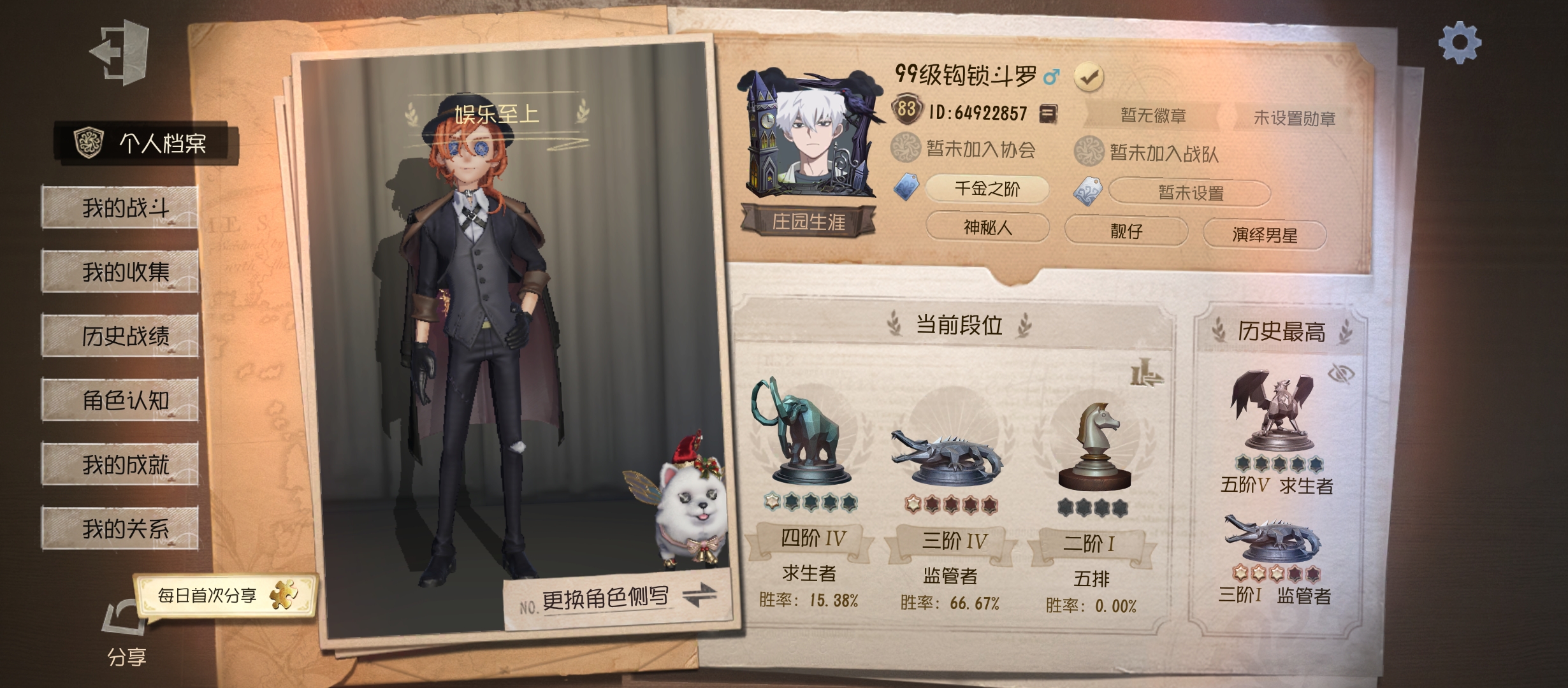 [15610026]第五人格 安卓官服换绑冷却2.3 605时装 23金皮 12金挂 艾扎克佛斯特 破碎的芙拉吉尔 采风的仙灵 石榴碟小姐 欧律狄刻 司药 星之王 溯光 薄金 幽灵帆 祈雨珠 长夜 星相师 椰香假日 不会枯萎的花 缚愿 胧夜 怪鸟 初晴 盖提亚之遗 灵犀妙探 盛夏飞盘 片刻闲暇 年岁 滚滚伙伴 桃乐丝 异动指针
