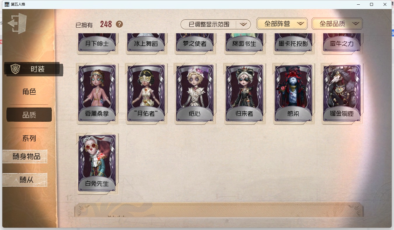 [15581150]苹果官服 手机账号 248时装 11金皮 67紫皮 14随从 80随身物品 【时装】:勘探员-盖提亚之遗鹿头-镏金铜鹿爱哭鬼-摩诺“心理学家”-末世搜救记者-赤松枫“愚人金”-罪恶熔火渔女-chef k佣兵-弧矢星园丁-怪鸟佣兵-感染病患-溯光“杰克”-加里幸运儿-蛋小黄的好朋友教授-紧急运输机械师-纸心小说家-“伊始新篇”机械师-归来者“杰克”-夜来香律师-白兔先生空军-樋口一叶“噩梦”-“渊”病患-星辰画家-江户川乱步红蝶-竹华舞女-香薰桑拿医生-痊愈幸运儿-拉塔托斯克摄影师-宿醉