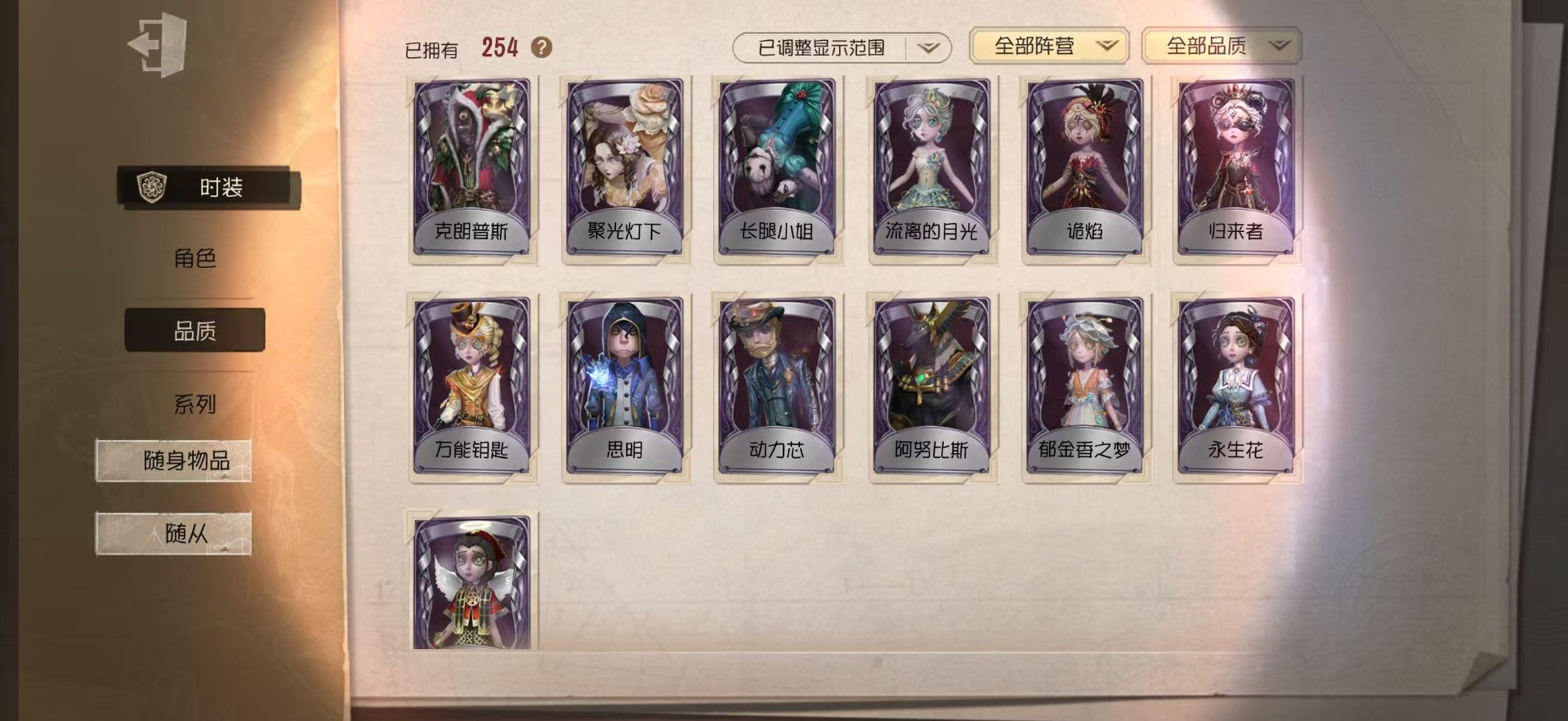 [14206379]oppo-非账号转移 手机账号 350时装 7金皮 87紫皮 17随从 157随身物品 【时装】:幸运儿-星航之旅飞行家-异相睡眠爱哭鬼-摩诺“心理学家”-朱丽叶古董商-黑鸦佣兵-蒸汽少年蜘蛛-花祭“囚徒”-天海兰太郎教授-吟游诗人蜡像师-星相师骑士-ment k记者-伊布大副-雷斯垂德探长画家-掌中篆记古董商-陶梦嫣幸运儿-蛋小黄的好朋友古董商-墨韵邮差-潘塔龙画家-多色印刷木偶师-义体再构小说家-“伊始新篇”哭泣小丑-熄灭的太阳“法罗女士”-芳泽霞蜡像师-收藏品击球手-冠军舵手击球手-熔岩蛋糕击球手-迫降专家空军-毛利兰机械师-咫尺天涯哭泣小丑-炮弹飞船画家-江户川乱步“杰克”-邪眼寄主舞女-高卷杏舞女-女武神玩具商-线控信号“小女孩”-桃乐丝幸运儿-拉塔托斯克先知-观测者前锋-坂本龙司前锋-skull盲女-吉尔达宿伞之魂-十字路口的美少年入殓师-喜多川祐介入殓师-fox入殓师-诺曼