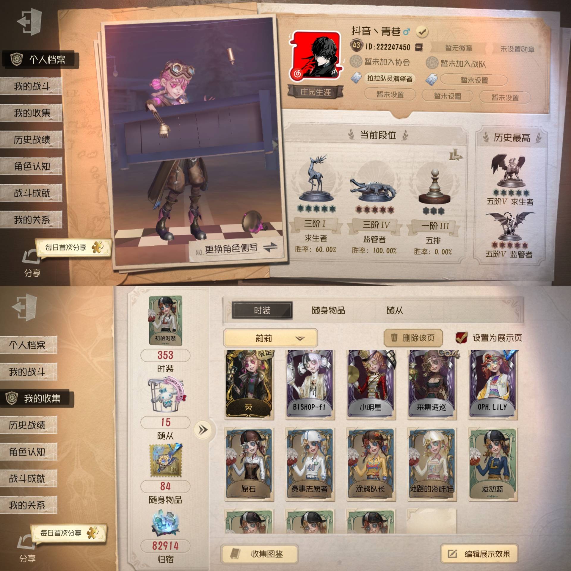 [13474560]第五人格 vivo渠道服 拉拉队员差一全皮 拉拉情号 7金皮 6金挂 荧 首席顾问 椰香假日 花祭 司药 盖提亚之遗 片刻闲暇 sishopf1 小明星 采集速巡 oph.lily 芳泽霞 坂本龙司 skull 恶之花