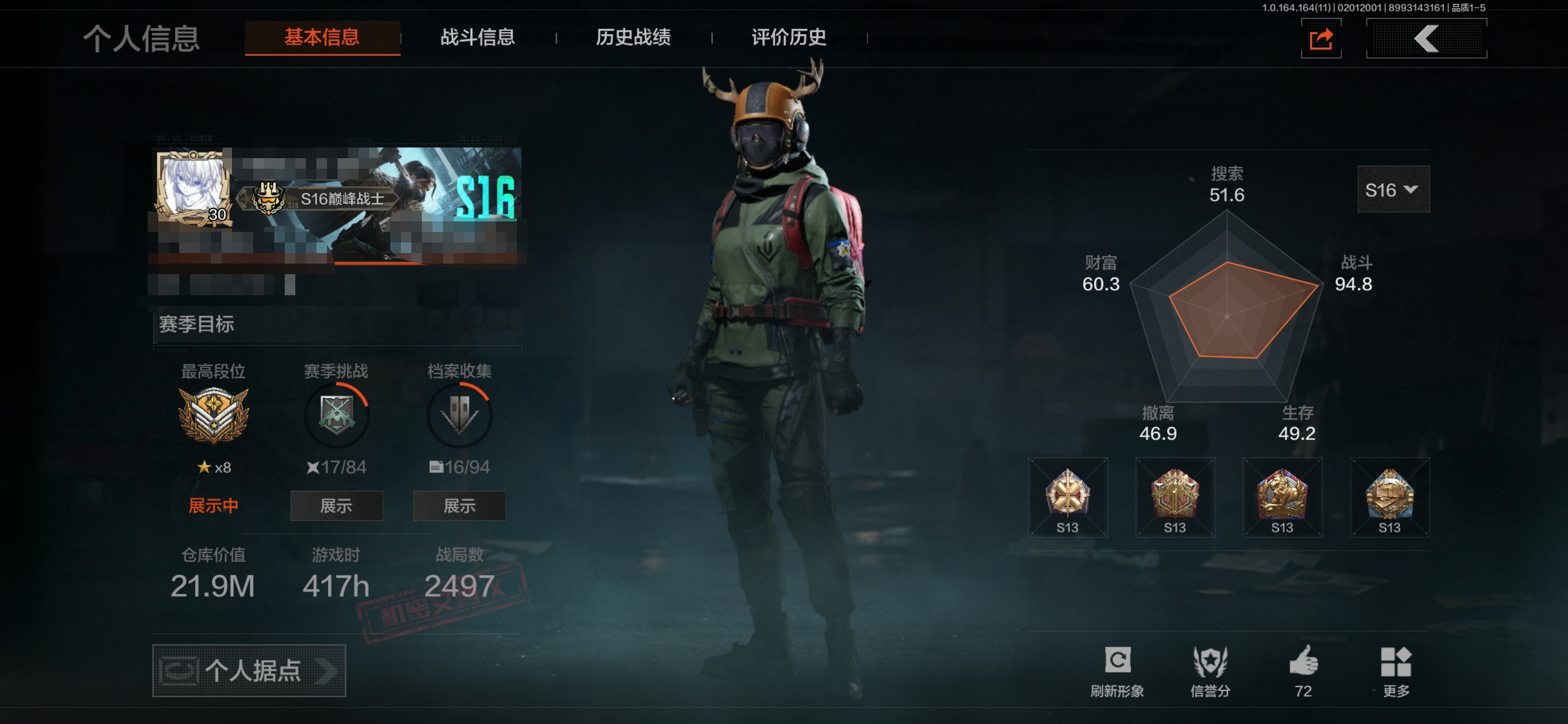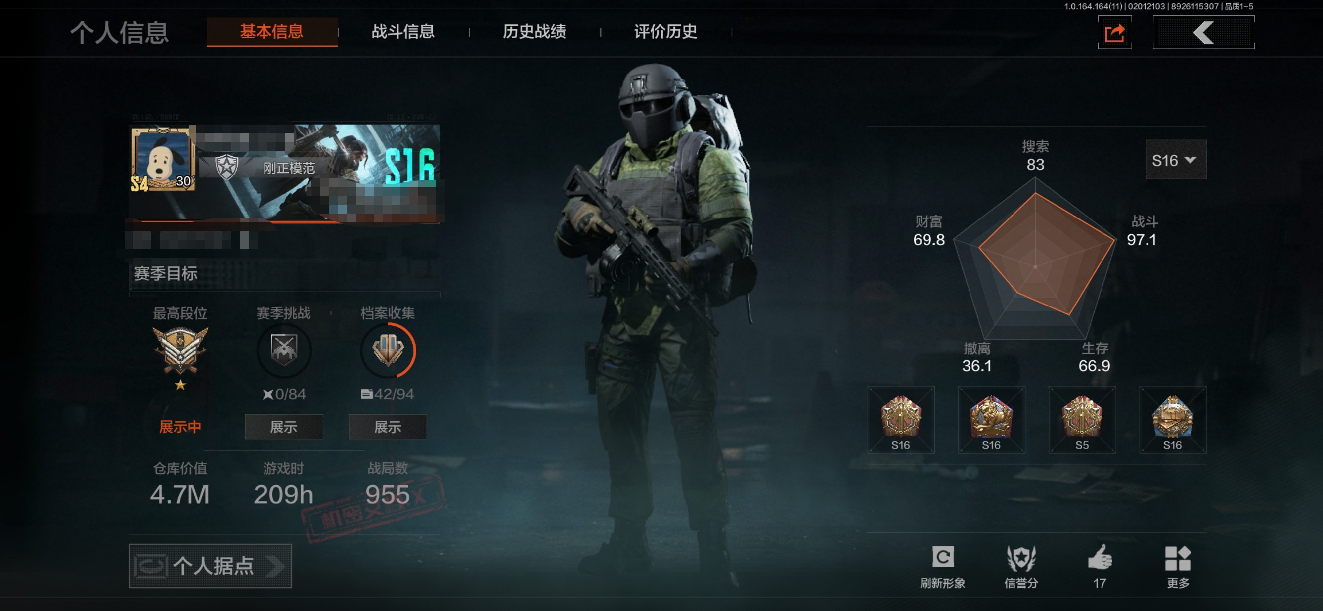 【aqqh178】等级:30/段位:王牌/仓库价值百万:1/柯恩币:1/s-07折刀/热能武器补牢/旧王圣谕vss/旧王圣谕q191/告丧夜曲ar57
