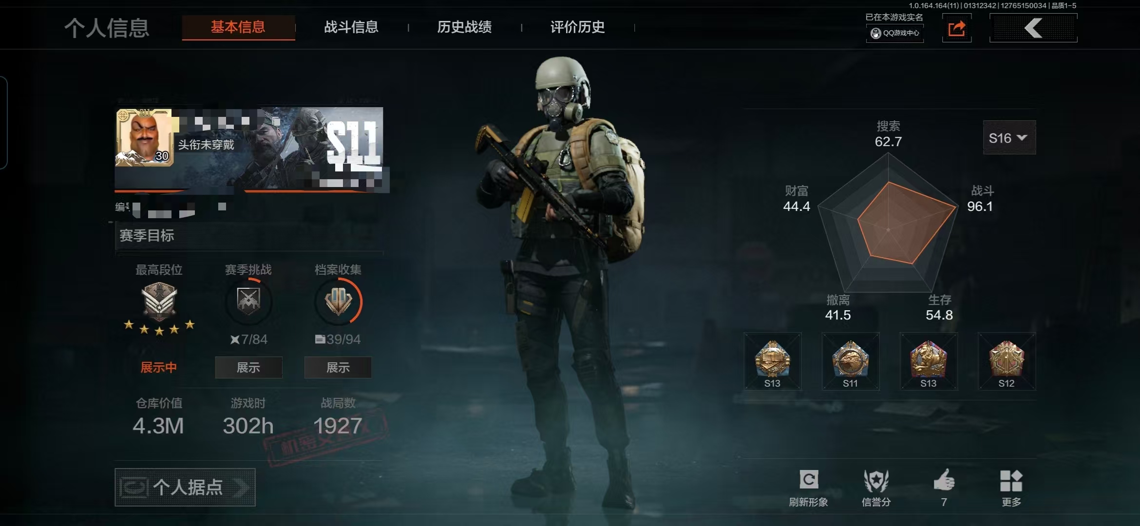 库存价值48.6 1金套装 3金呛皮 可修改实名 【柯恩币数量】39187 刀皮 空腔战术 【角色装扮(金)】白蔷薇·斯黛拉 【金色呛皮】包络战术·akm战术大师·aek利齿风暴·m 【紫色呛皮】利齿风暴·t79骑士之剑·groza骑士之剑·t03骑士之剑·scar-l包络战术