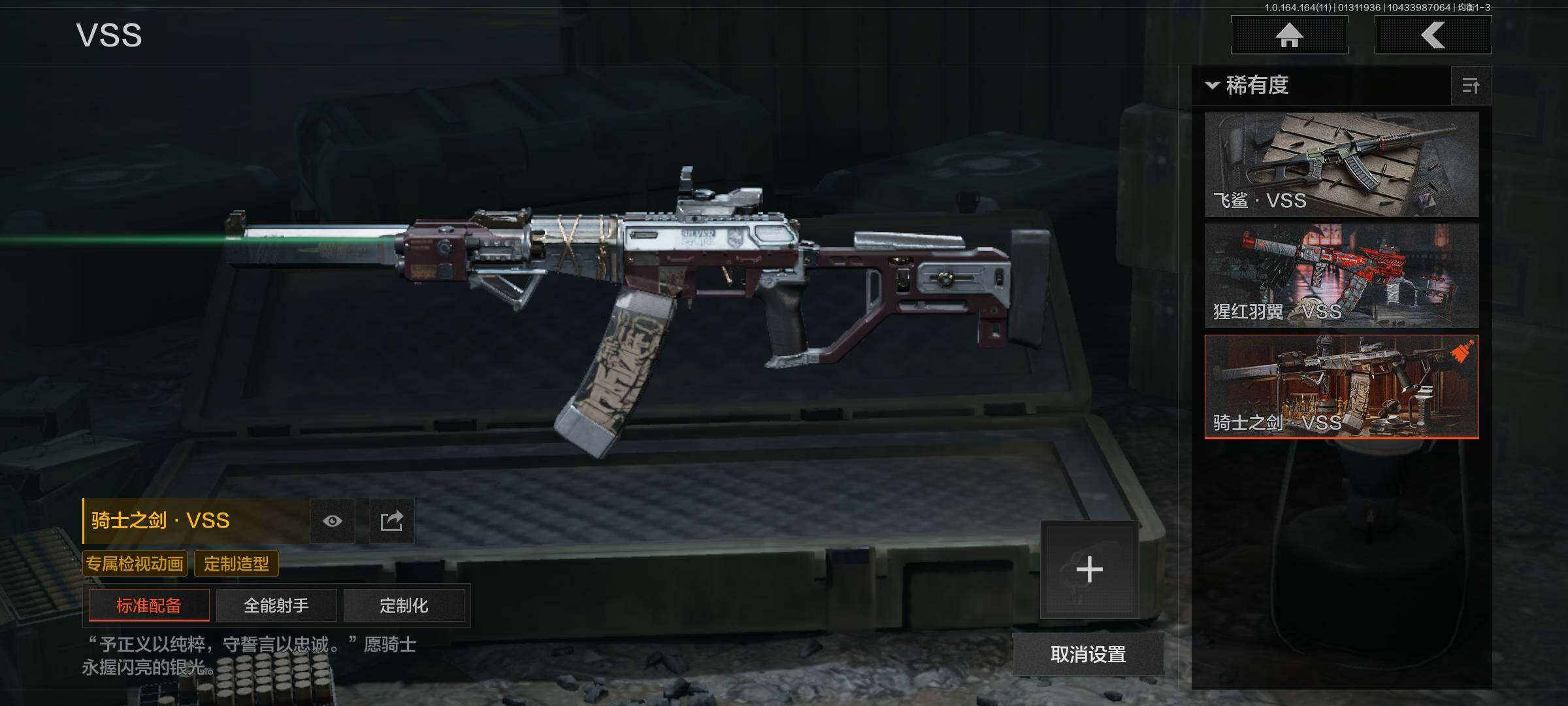 两把手感不错的刀皮,仓库价值122m,科恩币41123836,7把金呛,经济实惠到手既玩【勾选了部分装备-详情看图-】 【近战武器】:下弦月,急袭弯刀 【金色呛皮】:竞技fal,告丧夜曲ar57,旧王圣谕q191,浮鳞影青q192,利齿风暴m,骑士之剑vss,棱光裂变qbu191