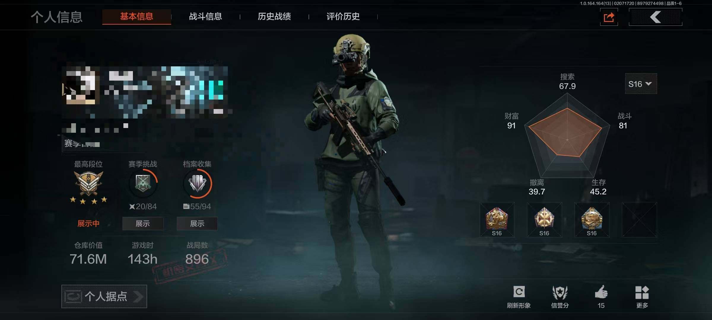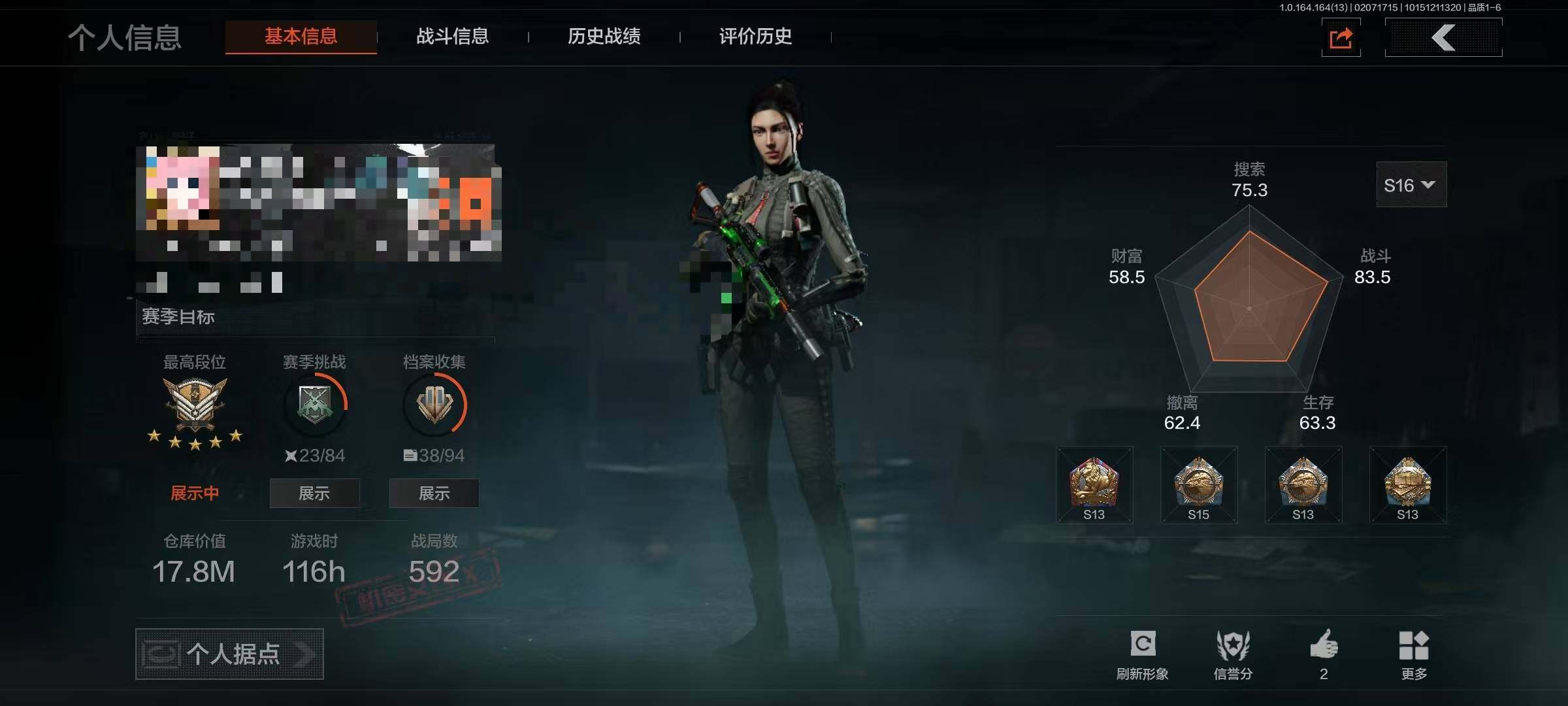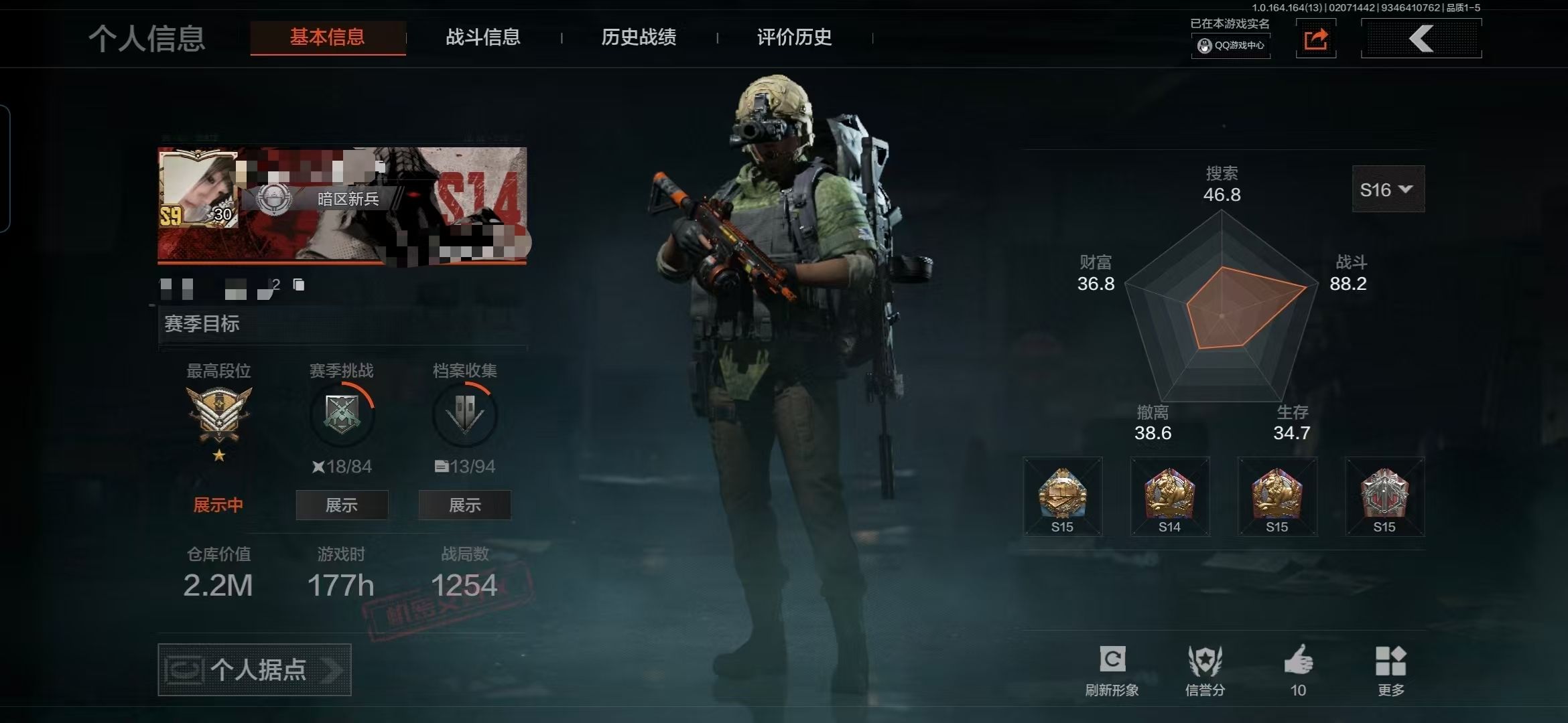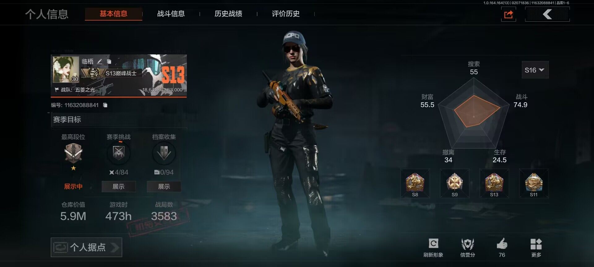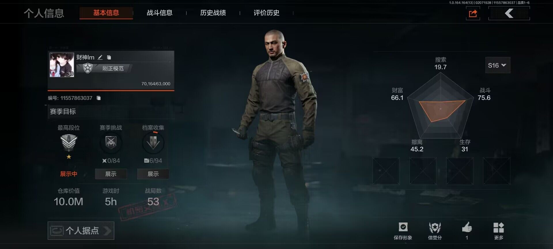 【aqzg1223】等级:30/段位:专家/仓库价值百万:16.9/柯恩币:5337943/热能武器补牢/工兵铲/棱光裂变qbu191