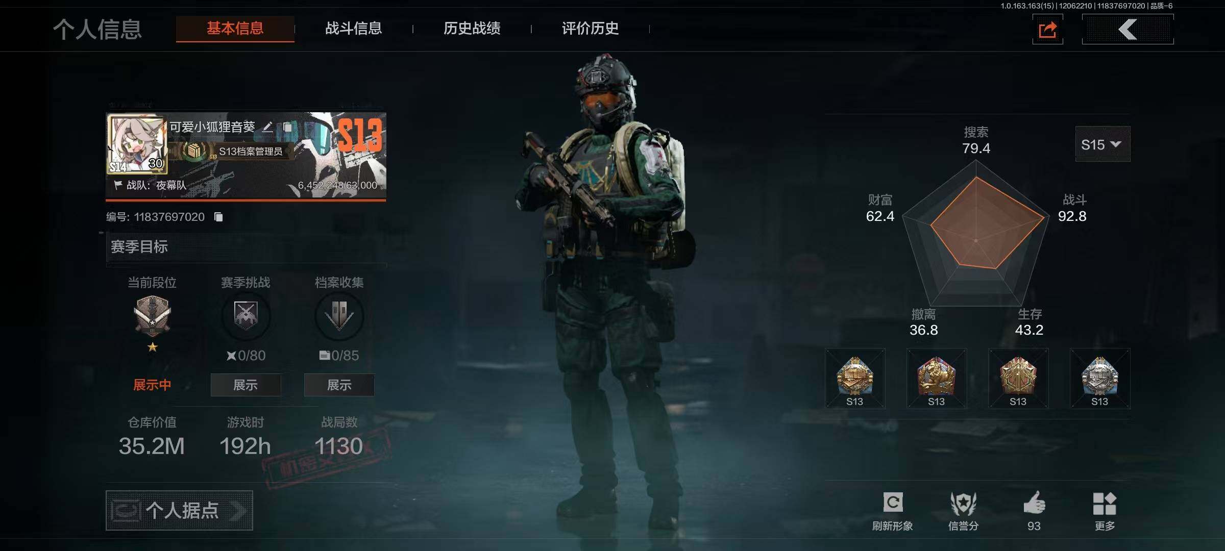库存价值56 1近战武器 3金呛皮 可修改实名 【柯恩币数量】:11041 【近战武器】:来战·开山刀 【金色呛皮】:竞技·fal蓝色咆哮·h416骑士之剑·vss 【紫色呛皮】:最后防线·aks74u脊峰速降·m4a1钢铁真理·f2000火力倾泻·rpd棱光裂变·akm战术大师·