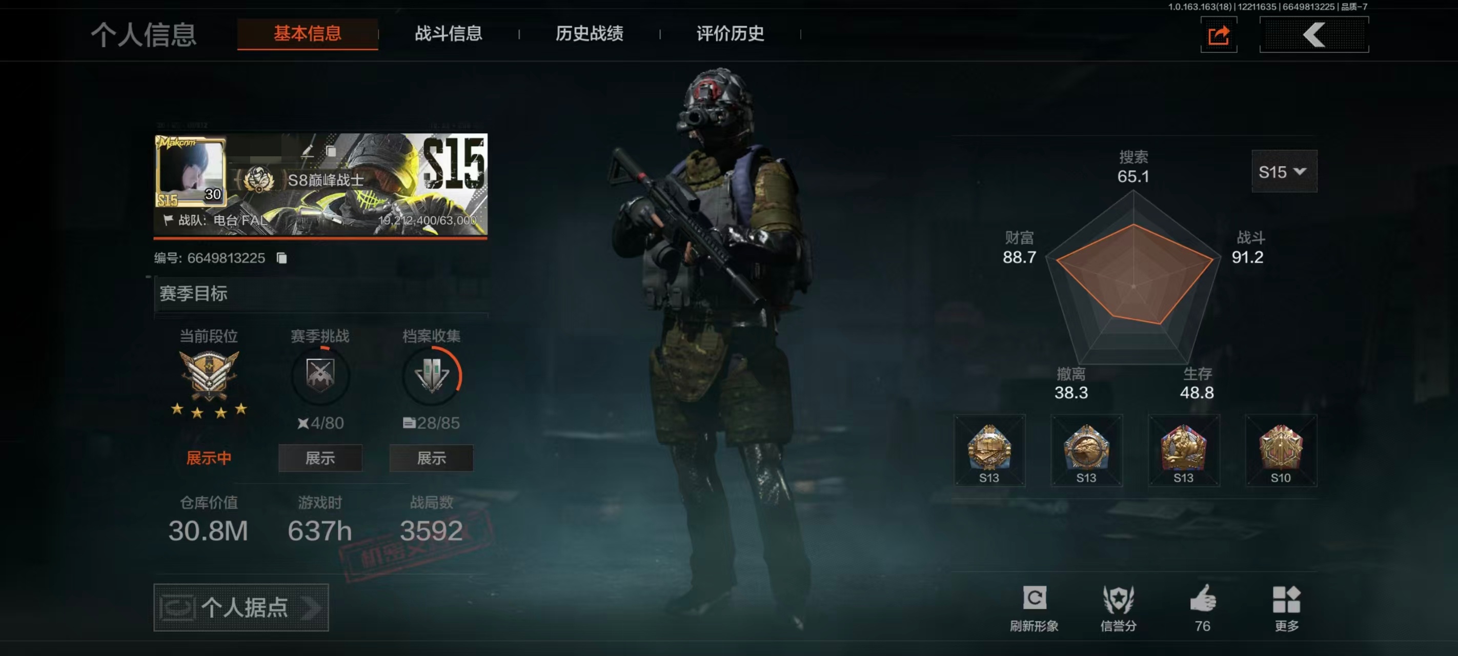 [16355146]库存价值1.8 2近战武器 可修改实名 【柯恩币数量】919865 【近战武器】工兵铲冬日冰镐 【紫色呛皮】德尔塔小队·m4a1