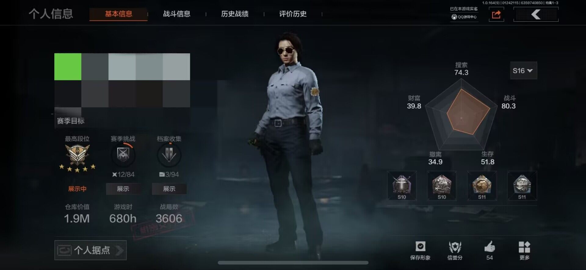【aqd148】等级:30/段位:专家/仓库价值百万:5.4/柯恩币:1418000/工兵铲