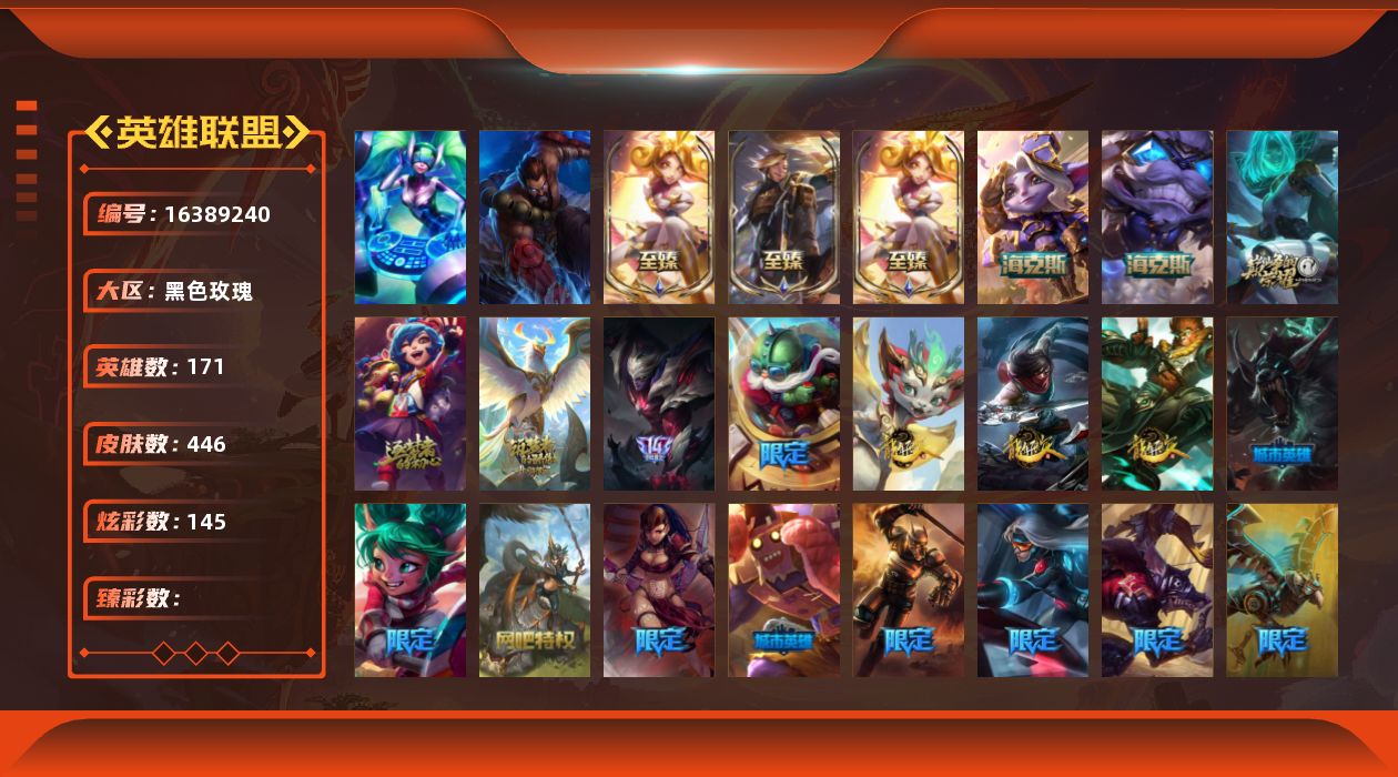 [16543928]【店主推荐捡漏号】未定级段位-172英雄-1026皮肤-737炫彩-4终极-53神话-173限定-99传说-212史诗 【神话皮肤】:十周年纪念安妮,源代码乐芙兰,十五周年纪念希维尔,暗星科加斯,神凰行者瑞羽圣凰艾尼维亚,水晶掠夺者卡兹克,海克斯科技崔丝塔娜,海克斯科技卡萨丁,海克斯科技克格莫,海克斯科技雷克顿,海克斯科技斯维因,恐惧新星德莱厄斯,摄魂使者薇恩,至臻真实伤害赛娜,至臻真实伤害亚索,至臻青花瓷千珏,至臻奥术师佐伊,至臻电玩女神凯特琳,至臻电玩女神凯特琳2022,至臻斗魂觉醒派克,至臻海之歌萨勒芬妮,至臻黑夜使者李青,至臻黑夜使者李青2022,至臻kda阿卡丽,至臻kda阿卡丽2022,至臻kda阿狸,至臻kda卡莎,至臻kda卡莎2022,至臻烈焰美人薇恩,至臻烈焰美人薇恩2022,至臻灵能特工伊泽瑞尔,至臻魅惑女巫厄运小姐,至臻魔女乐芙兰,至臻女帝黛安娜,至臻绒毛菲兹,至臻绒毛菲兹2022,至臻神龙尊者均衡之龙沃利贝尔,至臻神龙尊者炎龙瑟提,至臻王国机神玄武盖伦,至臻未来战士锤石,至臻未来战士锤石2022,至臻未来战士卢锡安,至臻西部魔影猎天使恶魔泰隆,至臻腥红之月亚托克斯,至臻腥红之月亚托克斯2022,至臻星之守护者艾克,至臻星之守护者妮蔻,至臻源计划正义艾瑞莉娅,至臻源计划正义艾瑞莉娅2022,至臻玉剑传说武剑仙,至臻玉剑传说武剑仙2022,至臻战斗学院拉克丝,至臻战斗学院拉克丝2022 【珍稀头像】:至爱的鹿头像 【热门头像】:爱情之歌头像,觅心之翼奎因头像,玉剑传说舞剑仙头像 【至臻皮肤】:至臻魔女乐芙兰,至臻魅惑女巫厄运小姐,至臻源计划正义艾瑞莉娅,至臻源计划:正义艾瑞莉娅2022,至臻电玩女神凯特琳,至臻电玩女神凯特琳2022,至臻黑夜使者李青,至臻黑夜使者李青2022,至臻烈焰美人薇恩,至臻烈焰美人薇恩2022,至臻灵能特工伊泽瑞尔,至臻kda阿卡丽,至臻kda阿卡丽2022,至臻王国机神玄武盖伦,至臻西部魔影猎天使恶魔泰隆,至臻玉剑传说武剑仙锐雯,至臻玉剑传说武剑仙2022,至臻战斗学院拉克丝,至臻战斗学院拉克丝2022,至臻kda阿狸,至臻绒毛菲兹,至臻绒毛菲兹2022,至臻神龙尊者均衡之龙沃利贝尔,至臻女帝黛安娜,至臻奥术师佐伊,至臻kda卡莎,至臻kda卡莎2022,至臻海之歌萨勒芬妮,至臻