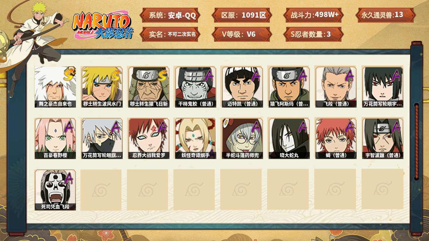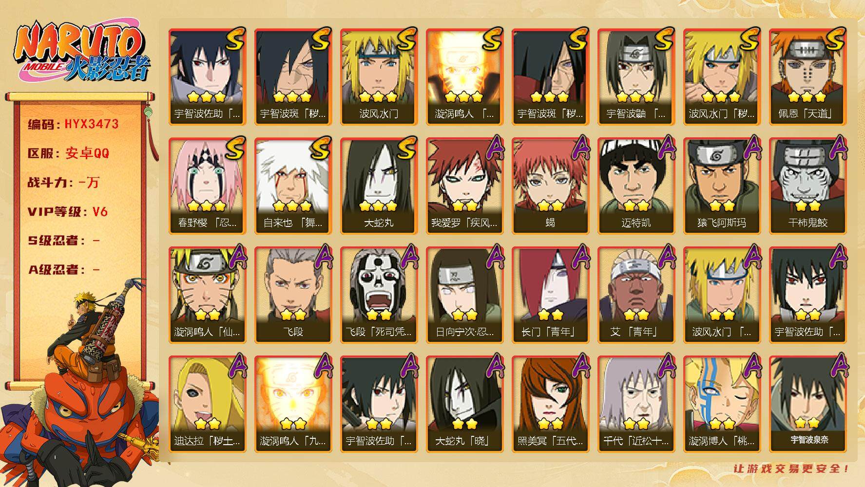 xshy446 【6s忍者 17a忍者 11通灵】【安卓q-3513区-132级-v6-341万战力
