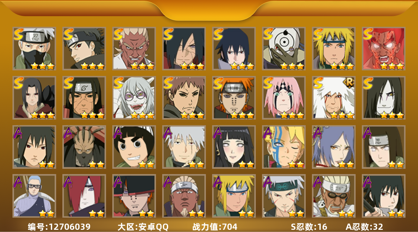 [12706039]【编号53413可秒换绑】店长推荐特价处理精品号16s级忍者数-32a级忍者数 【s级忍者】:千手柱间「秽土转生」3星,宇智波鼬「秽土转生」3星,宇智波斑「秽土转生·解」3星,春野樱「忍界大战」3星,艾「忍界大战」3星,宇智波止水「须佐能乎」3星,旗木卡卡西「须佐能乎」3星,罗砂「四代目风影」3星,自来也「舞之豪杰」3星,大蛇丸3星,波风水门3星,药师兜「仙人模式」3星,迈特凯「死门」3星,佩恩「天道」3星,宇智波佐助「永恒万花筒」3星,宇智波斑 「白面具」3星宇智波斑「白面具」 【a级忍者】:艾「青年」2星,长门「青年」2星,波风水门「青年」2星,达鲁伊「博人传」2星,迪达拉「秽土转生」2星,奇拉比「忍界大战」2星,飞段2星,飞段「死司凭血」2星,干柿鬼鲛5星,漩涡博人「桃式显现」2星,漩涡鸣人「仙人模式」2星,漩涡鸣人「九尾查克拉」2星,迈特凯5星,旗木卡卡西「万花筒写轮眼」2星,旗木卡卡西「幻之真容」2星,我爱罗「疾风传」4星,蝎4星,蝎「绯流琥」2星,小南「漂泊浪客」2星,猿飞阿斯玛5星,宇智波佐助「须佐能乎」2星,照美冥「五代目水影」2星,日向宁次「忍界大战」2星,日向雏田「最终章」2星,长十郎「六代目水影」2星,佩恩·六道「漂泊浪客」2星,李洛克「忍界大战」2星,黑土「博人传」2星,千手扉间「漂泊武士」2星,秋道丁次「忍界大战」2星,千代「近松十人卫」2星,宇智波泉奈2星