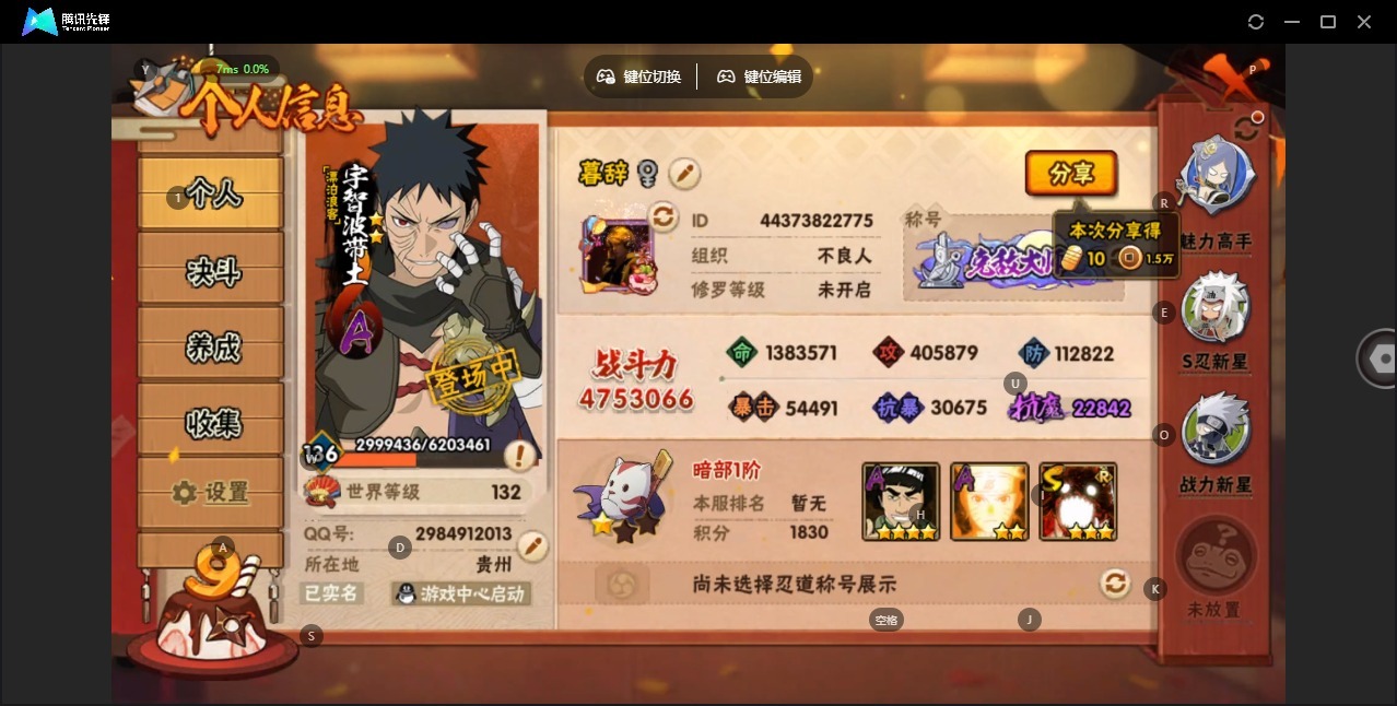 v9 9s忍 22a忍 15通灵 475.3w战力 可二次 可修改实名 【s级忍者】:宇智波止水「须佐能乎」宇智波斑「秽土转生·解」自来也 「舞之豪杰」大筒木舍人 「最终章」漩涡鸣人 「暴怒·第六尾」宇智波斑「白面具」宇智波鼬 「须佐能乎」佩恩「天道」波风水门