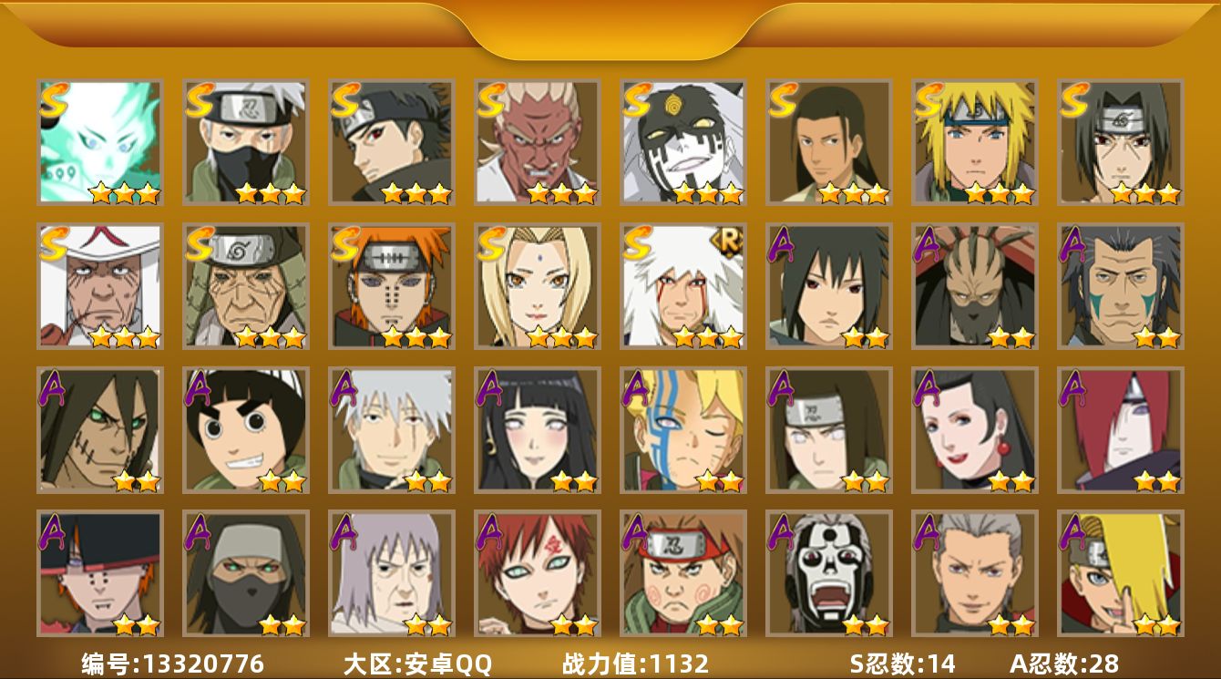 [13320776]v9 1132万战力 14s级忍者数-28a级忍者数 仙人自来也73片 九喇嘛水门50片 大蛇丸50片 秽土解斑80片 三代目风影52片 ll5205 【s级忍者】:猿飞日斩「秽土转生」3星,艾「忍界大战」3星,宇智波鼬「须佐能乎」3星,宇智波止水「须佐能乎」3星,旗木卡卡西「须佐能乎」3星,千手柱间「木叶创立」3星,自来也「舞之豪杰」3星,自来也「传说中的三忍」3星,纲手4星,猿飞日斩3星,波风水门4星,佩恩「天道」3星,大筒木桃式3星,大筒木舍人「最终章」3星 【a级忍者】:长门「青年」2星,迪达拉2星,飞段3星,飞段「死司凭血」2星,干柿鬼鲛5星,漩涡博人「桃式显现」2星,迈特凯5星,旗木卡卡西「幻之真容」2星,桃地再不斩「秽土转生」2星,我爱罗「疾风传」2星,我爱罗「忍界大战」2星,蝎4星,蝎「绯流琥」2星,角都「晓创生」2星,角都「秽土转生」2星,猿飞阿斯玛5星,宇智波鼬2星,日向宁次「忍界大战」2星,日向雏田「最终章」2星,佩恩·六道「漂泊浪客」2星,李洛克「忍界大战」2星,黑土「博人传」2星,秋道丁次「忍界大战」2星,千代「近松十人卫」2星,神农「羁绊」2星,不缘2星,宇智波泉奈2星,不动2星