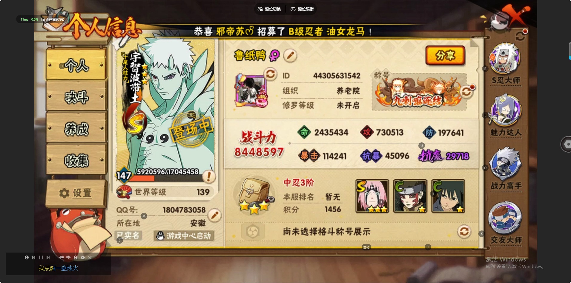 [16467128]v11 26s忍 32a忍 16通灵 844.8w战力 可二次 可修改实名 【s级忍者】宇智波止水「须佐能乎」艾「忍界大战」大筒木桃式宇智波斑「秽土转生·解」千手柱间·木叶创立宇智波佐助「永恒万花筒」神秘面具男 「红夜之刃」春野樱 「忍界大战」大筒木金式「博人传」漩涡鸣人 「九喇嘛连结」宇智波带土 「忍界大战」自来也 「舞之豪杰」旗木卡卡西「须佐能乎」大筒木舍人 「最终章」自来也 「传说中的三忍」漩涡鸣人 「暴怒·第六尾」波风水门「九喇嘛连结」宇智波斑「五影会谈」漩涡鸣人·宇智波佐助宇智波带土「十尾人柱力」宇智波鼬「秽土转生」千手扉间「秽土转生」宇智波鼬 「须佐能乎」佩恩「天道」波风水门大蛇丸