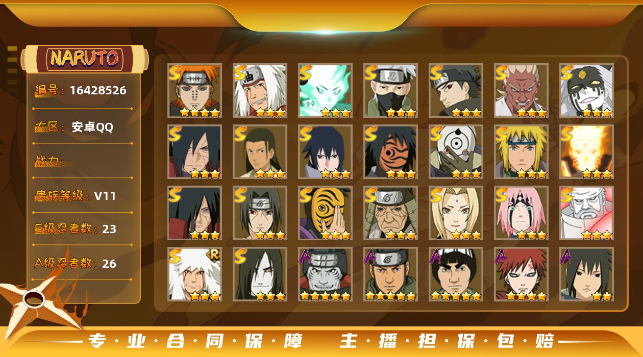 [16428787]【编号42006可秒换绑】店长推荐特价处理精品号 17s级忍者数-26a级忍者数 【s级忍者】:宇智波斑「秽土转生·解」3星,春野樱「忍界大战」3星,艾「忍界大战」3星,宇智波止水「须佐能乎」3星,旗木卡卡西「须佐能乎」3星,千手柱间「木叶创立」3星,自来也「舞之豪杰」3星,纲手3星,波风水门3星,神秘面具男「红夜之刃」3星,漩涡鸣人「九喇嘛连结」3星,佩恩「天道」3星,宇智波佐助「永恒万花筒」3星,宇智波斑 「白面具」3星宇智波斑「白面具」,大筒木金式3星,大筒木桃式3星,大筒木舍人「最终章」3星 【a级忍者】:艾「青年」2星,长门「青年」2星,迪达拉2星,飞段2星,飞段「死司凭血」2星,干柿鬼鲛5星,漩涡博人「桃式显现」2星,迈特凯5星,旗木卡卡西「幻之真容」2星,我爱罗「疾风传」3星,蝎4星,蝎「绯流琥」2星,角都「秽土转生」2星,猿飞阿斯玛5星,宇智波止水2星,宇智波鼬2星,宇智波佐助「须佐能乎」2星,宇智波佐助「万花筒写轮眼」2星,日向宁次「忍界大战」2星,日向雏田「最终章」2星,长十郎「六代目水影」2星,李洛克「忍界大战」2星,秋道丁次「忍界大战」2星,千代「近松十人卫」2星,不缘2星,宇智波泉奈2星