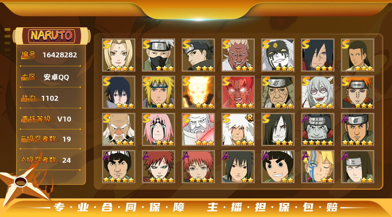 [16428282]【编号98084可秒换绑】【店长推荐精品号】19s级忍者数-24a级忍者数 【s级忍者】:猿飞日斩「秽土转生」3星,宇智波斑「秽土转生·解」3星,大野木「忍界大战」3星,春野樱「忍界大战」3星,艾「忍界大战」3星,宇智波止水「须佐能乎」3星,旗木卡卡西「须佐能乎」3星,千手柱间「木叶创立」3星,自来也「舞之豪杰」3星,大蛇丸3星,纲手4星,波风水门3星,药师兜「仙人模式」3星,漩涡鸣人「九喇嘛连结」3星,迈特凯「死门」3星,佩恩「天道」3星,宇智波佐助「永恒万花筒」3星,大筒木金式3星,大筒木桃式3星 【a级忍者】:艾「青年」2星,长门「青年」2星,达鲁伊「博人传」2星,迪达拉2星,迪达拉「秽土转生」2星,奇拉比2星,飞段2星,飞段「死司凭血」2星,干柿鬼鲛5星,漩涡博人「桃式显现」2星,迈特凯5星,我爱罗「疾风传」4星,蝎4星,猿飞阿斯玛5星,宇智波鼬2星,宇智波佐助「须佐能乎」2星,日向宁次「忍界大战」2星,长十郎「六代目水影」2星,李洛克「忍界大战」2星,黑土「博人传」2星,秋道丁次「忍界大战」2星,千代「近松十人卫」2星,不缘2星,宇智波泉奈2星