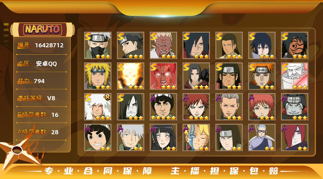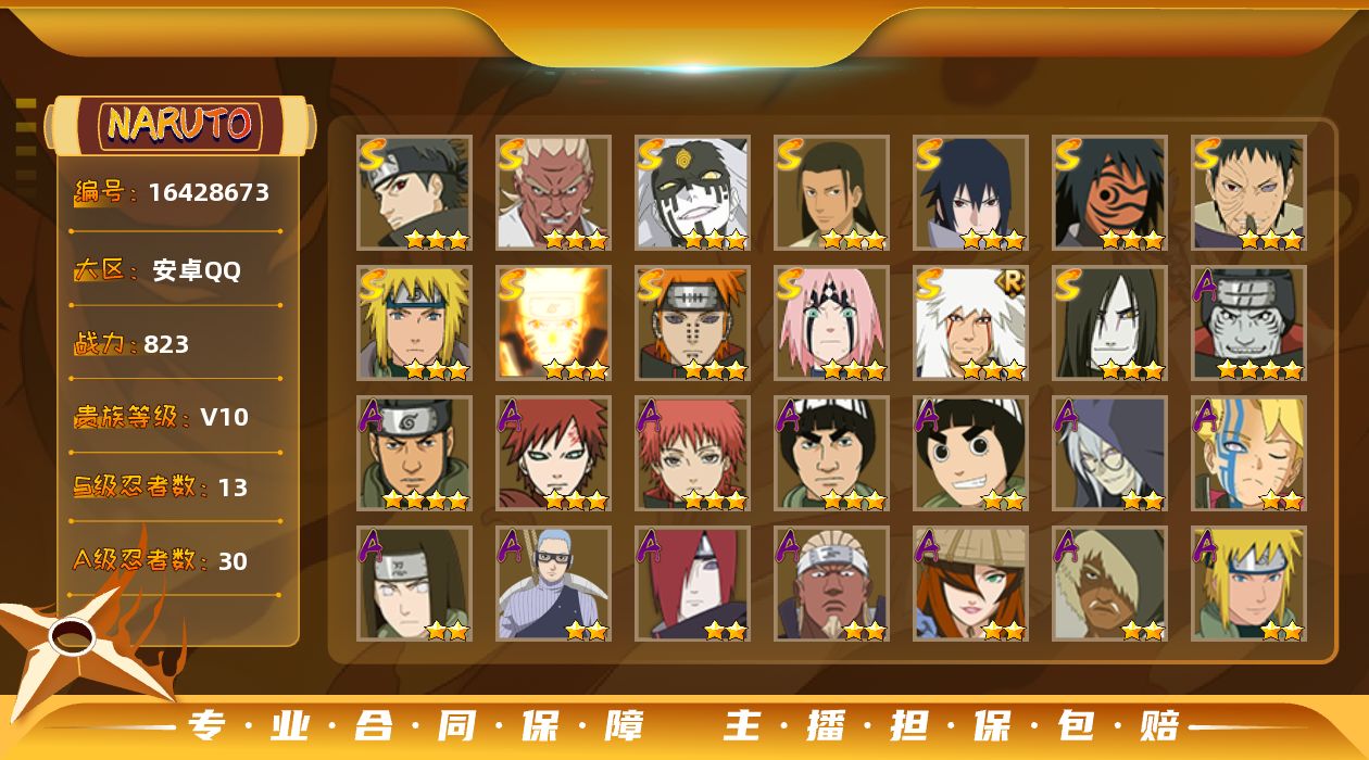[16428576]【编号74144可秒换绑】店长推荐精品号18s级忍者数-30a级忍者数 【s级忍者】:千手柱间「秽土转生」3星,宇智波斑「秽土转生·解」3星,宇智波带土「忍界大战」3星,宇智波鼬「须佐能乎」3星,艾「四代目雷影」3星,自来也3星,大蛇丸4星,纲手3星,千手柱间3星,千手扉间3星,猿飞日斩3星,宇智波斑3星,波风水门4星,神秘面具男3星,漩涡鸣人「九喇嘛连结」3星,迈特凯「死门」3星,佩恩「天道」3星,宇智波佐助「永恒万花筒」3星 【a级忍者】:艾「青年」2星,长门「青年」2星,波风水门「青年」2星,达鲁伊「博人传」2星,迪达拉2星,迪达拉「秽土转生」2星,大蛇丸「晓」2星,奇拉比3星,飞段4星,飞段「死司凭血」2星,干柿鬼鲛5星,漩涡鸣人「仙人模式」2星,迈特凯5星,旗木卡卡西「万花筒写轮眼」3星,我爱罗「疾风传」4星,蝎3星,小南2星,角都「地怨虞」2星,猿飞阿斯玛5星,宇智波止水2星,宇智波鼬2星,宇智波佐助「须佐能乎」2星,宇智波佐助「万花筒写轮眼」2星,照美冥「五代目水影」2星,日向宁次「忍界大战」2星,长十郎「六代目水影」2星,黑土「博人传」2星,春野樱「百豪」2星,秋道丁次「忍界大战」2星,千代「近松十人卫」2星