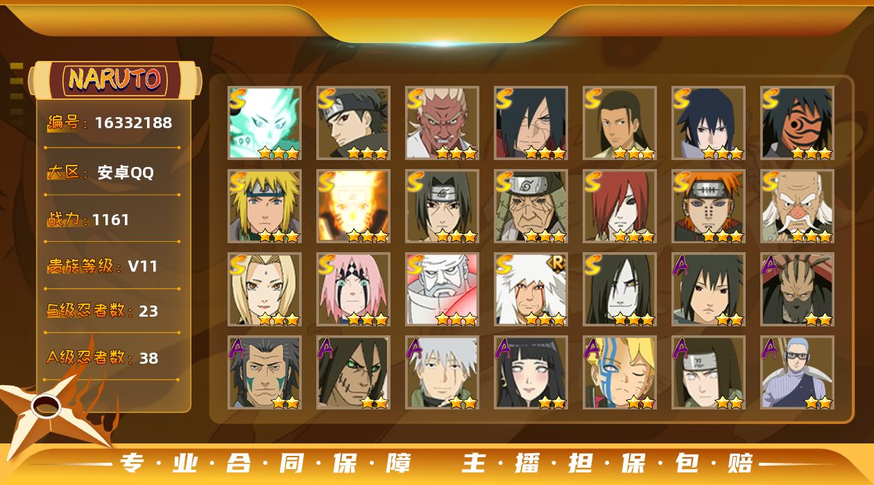 [16332188]23s级忍者数-38a级忍者数 【s级忍者】:长门「秽土转生」3星,猿飞日斩「秽土转生」3星,宇智波斑「秽土转生·解」3星,大野木「忍界大战」3星,春野樱「忍界大战」3星,艾「忍界大战」3星,宇智波鼬「须佐能乎」3星,宇智波止水「须佐能乎」3星,千手柱间「木叶创立」3星,自来也「舞之豪杰」3星,大蛇丸3星,自来也「传说中的三忍」3星,纲手3星,波风水门3星,神秘面具男「红夜之刃」3星,漩涡鸣人「九喇嘛连结」3星,佩恩「天道」3星,宇智波佐助「永恒万花筒」3星,大筒木金式3星,大筒木舍人「最终章」3星,波风水门「九喇嘛连结」3星,漩涡鸣人·宇智波佐助3星,宇智波带土「十尾人柱力」3星 【a级忍者】:艾「青年」2星,长门「青年」2星,波风水门「青年」2星,迪达拉2星,迪达拉「秽土转生」2星,大蛇丸「晓」2星,飞段3星,飞段「死司凭血」2星,干柿鬼鲛5星,漩涡博人「桃式显现」2星,迈特凯5星,旗木卡卡西「幻之真容」2星,桃地再不斩「秽土转生」2星,我爱罗「疾风传」2星,蝎3星,蝎「绯流琥」2星,角都「秽土转生」2星,猿飞阿斯玛5星,宇智波鼬2星,宇智波鼬「新春限定」2星,宇智波佐助「须佐能乎」2星,宇智波佐助「疾风传咒印」2星,宇智波佐助「万花筒写轮眼」2星,照美冥「五代目水影」2星,日向宁次「忍界大战」2星,日向雏田「最终章」2星,宇智波带土「暴怒」2星,宇智波带土「漂泊浪客」2星,长十郎「六代目水影」2星,神秘面具男「忍者之路」2星,黑土「博人传」2星,秋道丁次「忍界大战」2星,千代「近松十人卫」2星,土台「忍界大战」3星,宇智波泉奈2星,不动2星,巳月「仙人模式」2星,迈特凯「青春爆炸」2星 【角色时装】:宇智波带土「漂泊浪客」-终焉刹寂,宇智波带土「暴怒」-愤怒的伊始