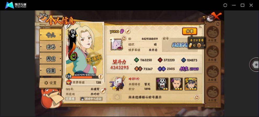 【s忍者5 a忍者13 通灵11】【安卓q-区3475-等级132-v3-229万战力】【s级】波风水门 佩恩「天道」 漩涡鸣人·宇智波佐助 宇智波鼬「须佐能乎」 自来也「舞之豪杰」【a级】神农「羁绊」 迪达拉「秽土转生」 干柿鬼鲛 迈特凯「青春爆炸」 机械鸣人「初始形态」 千代「近松十人卫」 波风水门「青年」 我爱罗「疾风传」 宇智波佐助「须佐能乎」 不动 黑土「四代目土影」