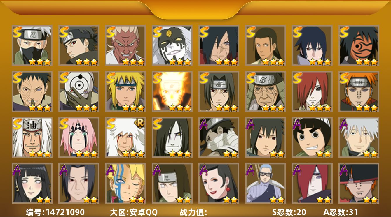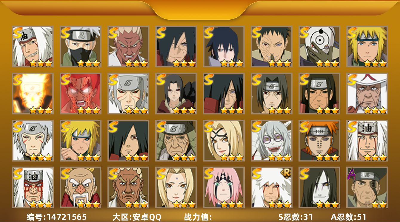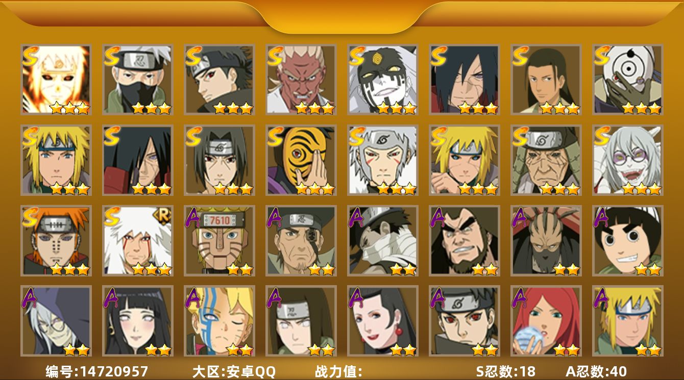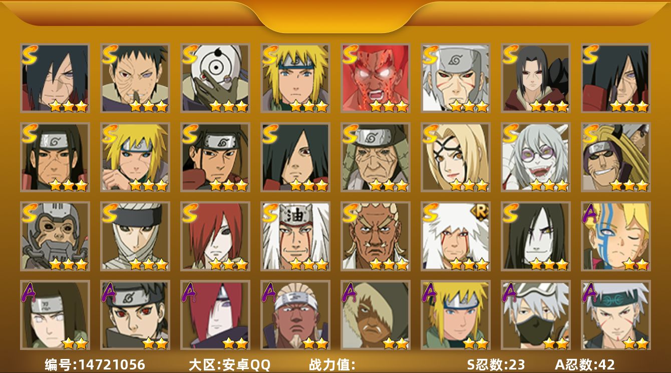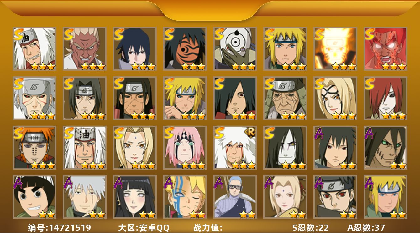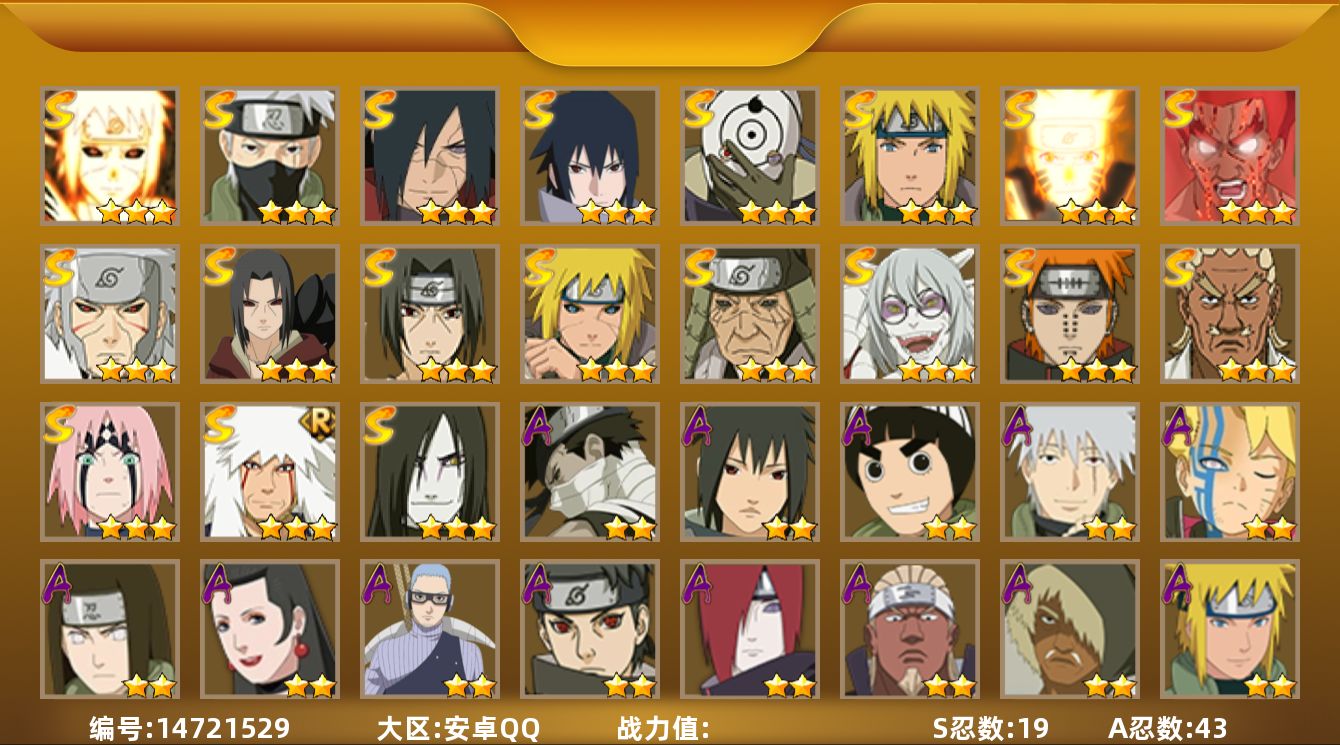 【hyz2955】v9/战力822w/s忍16/a忍28/日向宁次「忍界大战」/2星大野木「侠隐江湖」/3星波风水门「九喇嘛连结」/死司飞段/宇智波鼬/5星猿飞阿斯玛/须佐能乎旗木卡卡西/忍战带土/佩恩/波风水门/3星蝎/秽土水门/忍战丁次/2星角都「秽土转生」/5星迈特凯/博人桃式显现/创立柱间/3星我爱罗「疾风传」/2星李洛克「忍界大战」/2星土台「忍界大战」/青年水门/2星蝎「绯流琥」/
