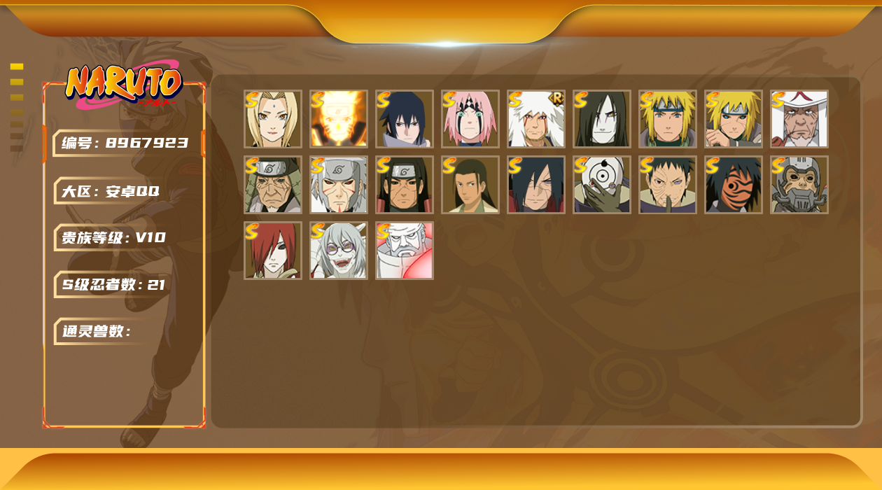 v10 21s 可二次 s级忍者:宇智波斑「秽土转生·解」千手柱间·木叶创立宇智波佐助「永恒万花筒」神秘面具男 「红夜之刃」春野樱 「忍界大战」大筒木金式「博人传」漩涡鸣人 「九喇嘛连结」宇智波带土 「忍界大战」千手柱间「秽土转生」自来也 「舞之豪杰」药师兜「仙人模式」“宇智波