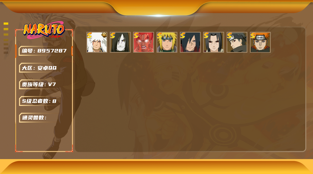 [8957287]v7 8s 可二次 s级忍者:宇智波止水「须佐能乎」宇智波斑「秽土转生·解」迈特凯「死门」自来也 「舞之豪杰」宇智波鼬「秽土转生」佩恩「天道」波风水门大蛇丸