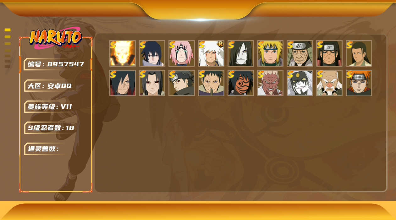 [8957208]v10 14s 可二次 s级忍者:宇智波止水「须佐能乎」艾「忍界大战」大筒木桃式宇智波斑「秽土转生·解」千手柱间·木叶创立宇智波佐助「永恒万花筒」神秘面具男 「红夜之刃」春野樱 「忍界大战」漩涡鸣人 「九喇嘛连结」宇智波带土 「忍界大战」自来也 「舞之豪杰」旗木卡卡西「须佐能乎」佩恩「天道」波风水门