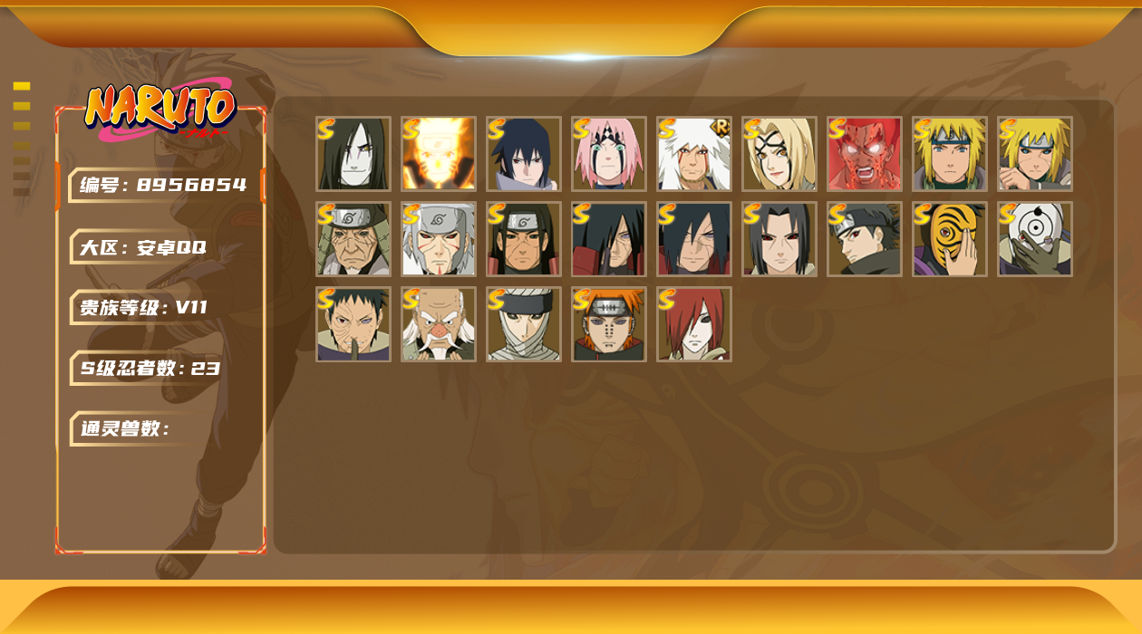 v10 12s 可二次 s级忍者:宇智波斑「秽土转生·解」千手柱间·木叶创立宇智波佐助「永恒万花筒」神秘面具男 「红夜之刃」春野樱 「忍界大战」自来也 「舞之豪杰」旗木卡卡西「须佐能乎」“宇智波斑” 「白面具」猿飞日斩「秽土转生」猿飞日斩波风水门纲手