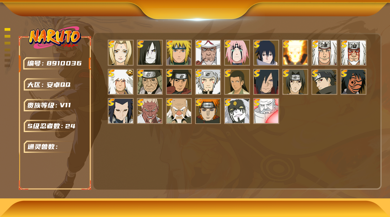 v11 24s 可二次 s级忍者:宇智波止水「须佐能乎」艾「忍界大战」大筒木桃式宇智波斑「秽土转生·解」千手柱间·木叶创立宇智波佐助「永恒万花筒」神秘面具男 「红夜之刃」春野樱 「忍界大战」大筒木金式「博人传」漩涡鸣人 「九喇嘛连结」三代目风影 「秽土转生」大野木 「忍界大战」